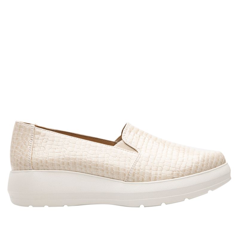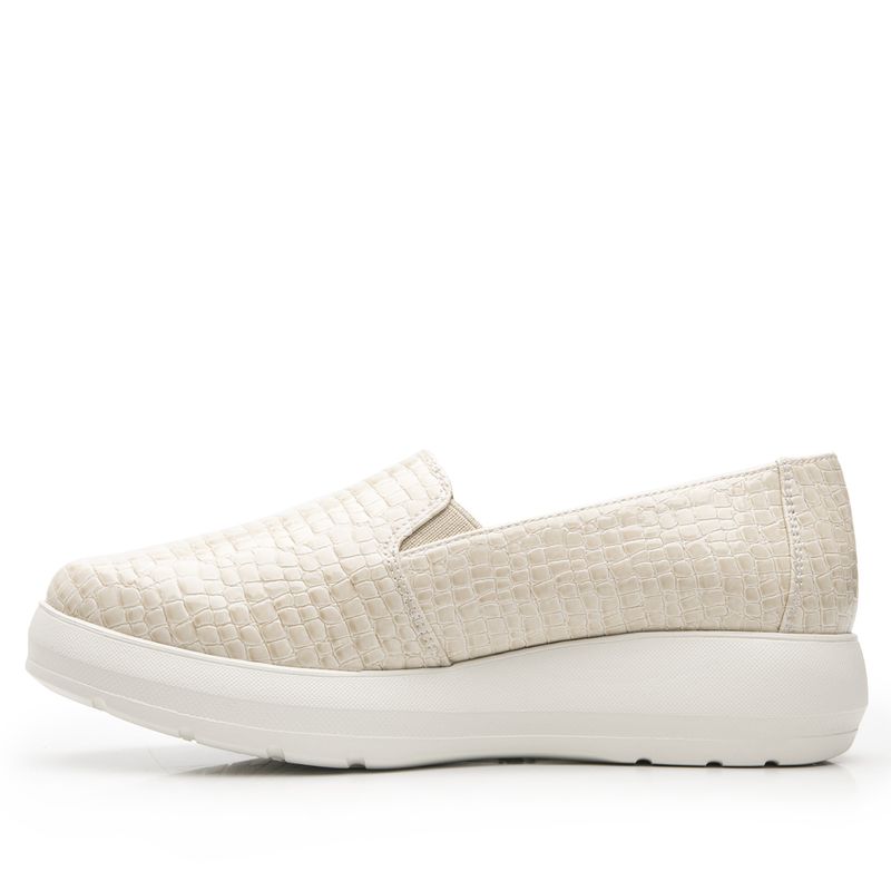Mocasín Mujer Edith 126716 Blanco Perla. Mocasín casual elaborado en ecocuero que cuenta con el sello de comodidad y estilo de zapatos Flexi. Este producto forma parte de nuestra línea casual para dama que ofrece confort al caminar, además de ser el complemento perfecto para un look muy casual gracias a sus estilos tipo mocasín y náuticos. Disfruta de su gran versatilidad y no dejes de combinarlos con todos los atuendos que desees. Cuenta con una plantilla anatómica que además de ofrecer confort, ayuda al medio ambiente ya que está elaborada con materiales reciclados. Este calzado cuenta con una suela de flowtek, una plantilla de cuero y sin forro. Altura 4.2 cm. SKU: 126716PERLA
