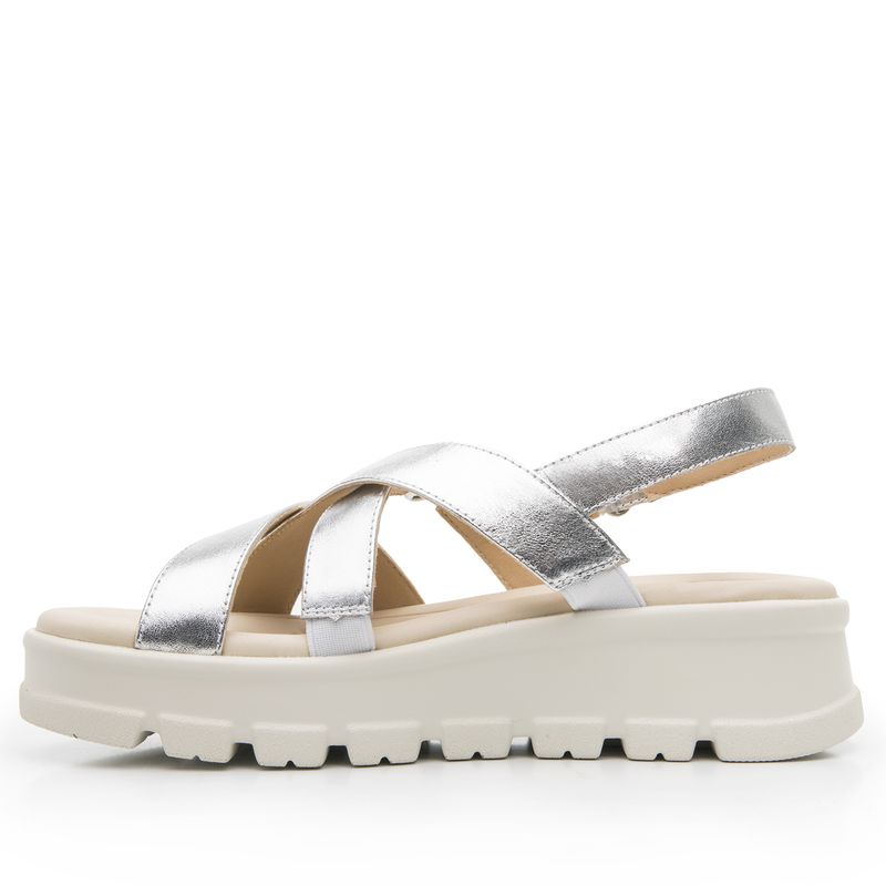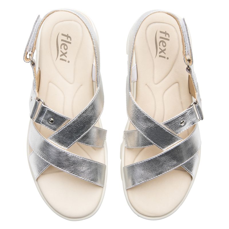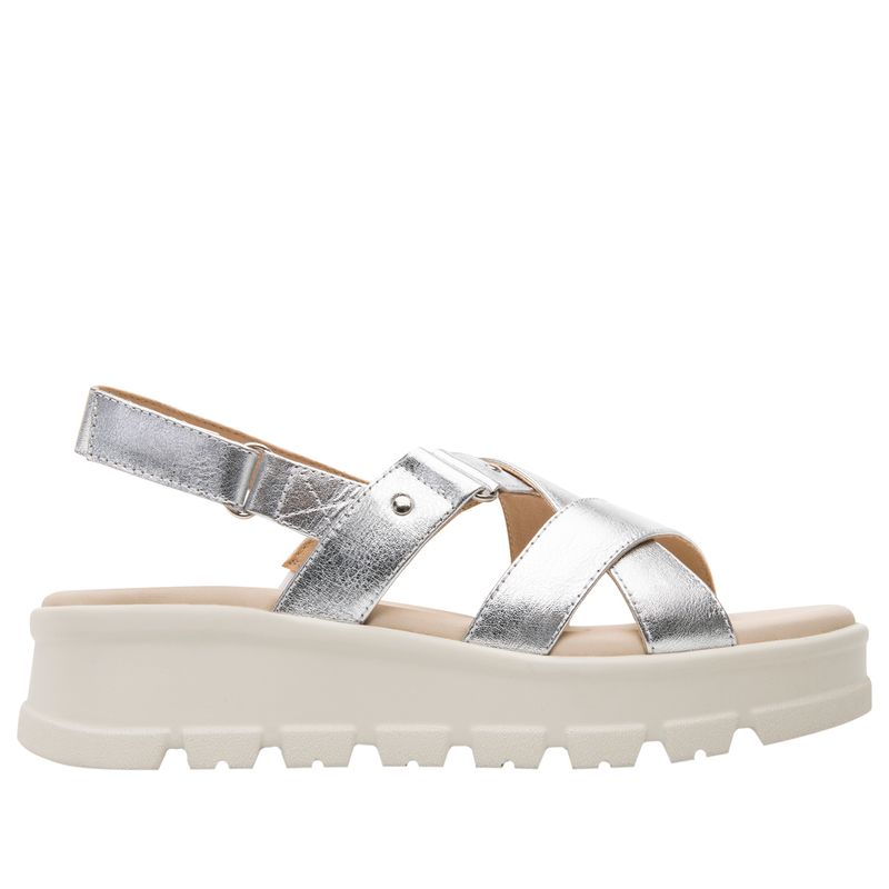 Sandalia Mujer Lexa 128513 Plateada. Sandalia con plataforma casual elaborada en cuero que cuenta con el sello de comodidad y estilo de zapatos Flexi. Este producto forma parte de nuestra línea de sandalias que lo tienen todo: sus estilos y colores de moda, con una suela chunky que les da ese look actual y manteniendo ese confort que caracteriza la marca. Este calzado cuenta con hebilla, suela de pu, una plantilla de cuero y forro ecocuero. Altura 4.7 cm. SKU: 128513PLATA