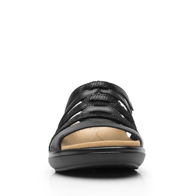 Sandalia Mujer Siwa 133701 Negra. Sandalia cuña confort elaborada en cuero que cuenta con el sello de comodidad y estilo de zapatos Flexi. Este producto forma parte de nuestra línea de sandalia funcional y femenina, sus estilos son fáciles de usar y con cueros de calidad. Sus detalles elásticos los hacen cómodos y aseguran el pie. Su plantilla acojinada y anatómica, es suave, de microfibra transpirable y antibacterial. Este calzado cuenta con una suela de pu, una plantilla de textil y forro ecocuero. Altura 4.2 cm. SKU: 133701NEGRO