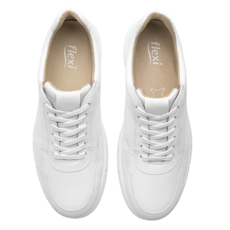 Zapatilla Mujer Turan 137902 Blanca. Zapatilla confort elaborada en cuero que cuenta con el sello de comodidad y estilo de zapatos Flexi. Este producto forma parte de nuestra línea de inyección directa con estilos versátiles y cómodos. Todos son en corte de cuero y son ideales para llevar durante el día. Su suela de inspiración sport, corrida y ligera, te dará ese look actual. Este calzado cuenta con cordones, suela de pu, una plantilla de cuero y forro textil. SKU: 137902BLANCO