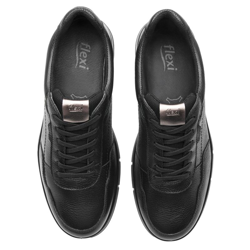 Zapatilla Mujer Turan 137902 Negra. Zapatilla confort elaborada en cuero que cuenta con el sello de comodidad y estilo de zapatos Flexi. Este producto forma parte de nuestra línea de inyección directa con estilos versátiles y cómodos. Todos son en corte de cuero y son ideales para llevar durante el día. Su suela de inspiración sport, corrida y ligera, te dará ese look actual. Este calzado cuenta con cordones, suela de pu, una plantilla de cuero y forro textil. SKU: 137902NEGRO