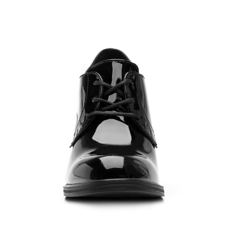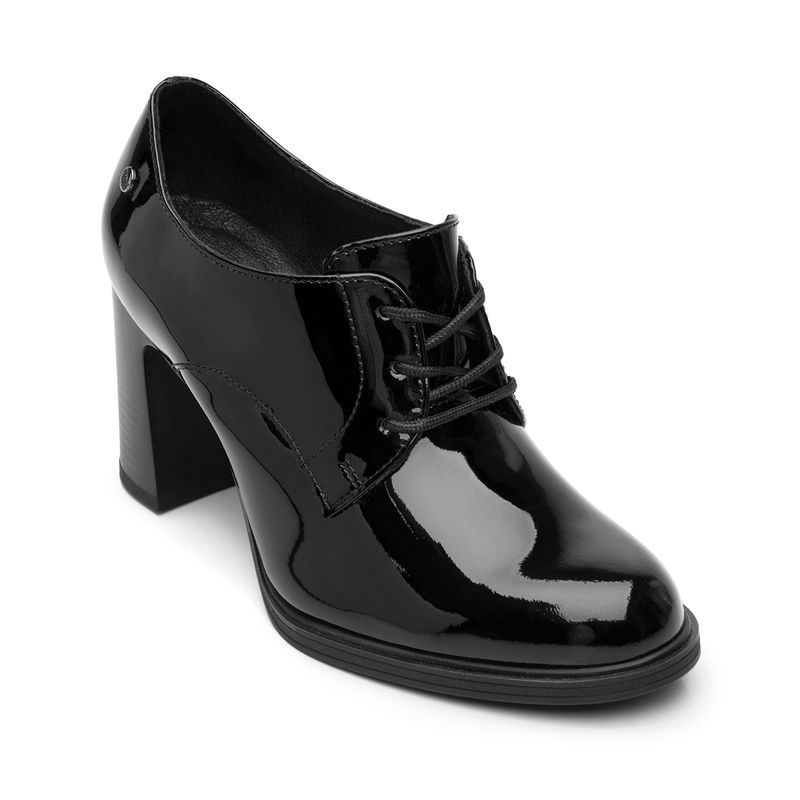 Bootie Mujer Mariela 130610 Negro Charol. Zapato bootie elaborado en cuero natural que cuenta con el sello de comodidad y estilo de zapatos Flexi. Este producto forma parte de nuestra línea de dama semiformal con diseños clásicos, materiales de calidad y detalles que te harán lucir elegante sin sacrificar comodidad gracias a su tacón de bloque que brinda soporte y estabilidad al caminar. Sus detalles como texturas, hebillas y herrajes destacarán en la temporada. Este calzado cuenta con una suela de abs / tpu, una plantilla de cuero y forro ecocuero. Altura de tacón 8cm. SKU: 130610NEGRO