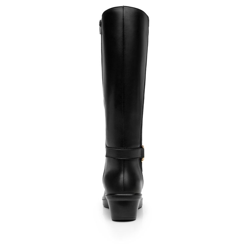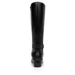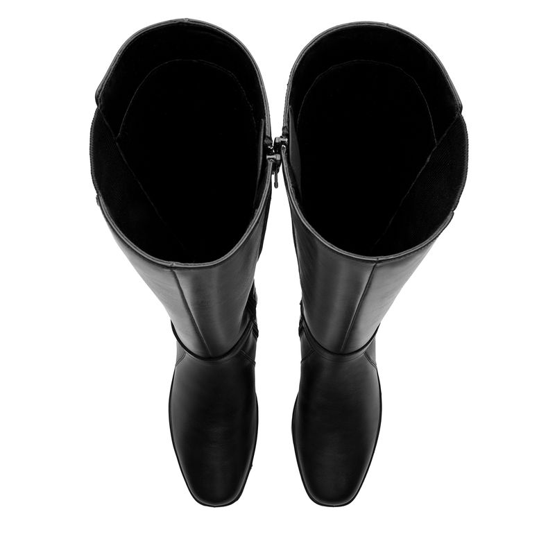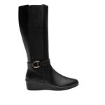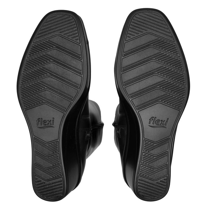 Bota Mujer Anansa 136706 Negra. Bota alta confort elaborada en cuero natural que cuenta con el sello de comodidad y estilo de zapatos Flexi. Este producto forma parte de nuestra línea para dama que ofrece gran confort y durabilidad por su suela con una pequeña cuña. Entre sus estilos cuenta con slip on, botines y una bota alta con un detalle de elástico que brinda un ajuste perfecto. Este calzado cuenta con una suela de pu, una plantilla de cuero y sin forro. Altura plataforma 4.9cm - Altura caña 35cm - diametro 19.5cm. SKU: 136706NEGRO