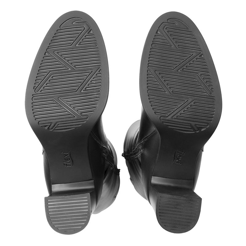 Bota Mujer Mariela 130604 Negro. Bota tacón alto elaborada en cuero natural que cuenta con el sello de comodidad y estilo de zapatos Flexi. Este producto forma parte de nuestra línea de dama semiformal con diseños clásicos, materiales de calidad y detalles que te harán lucir elegante sin sacrificar comodidad gracias a su tacón de bloque que brinda soporte y estabilidad al caminar. Este calzado cuenta con cierre interno, suela de abs / tpu, una plantilla de cuero y forro textil. SKU: 130604NEGRO