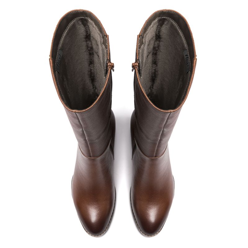Bota Mujer Nabba 132401 Café Cognac. Disfruta nuestro estilo 132401, una bota alta tacón elaborada en cuero color cognac que cuenta con el sello de comodidad y estilo de zapatos Flexi. Este producto forma parte de nuestra línea semiformal que brinda comodidad y elegancia, cuenta con un estilo de bota alta a la rodilla, con un estilo sofisticado y clásico inspirado en la tendencia ecuestre. Es un estilo que tomará protagonismo durante la temporada, gracias a su diseño transicional. Este calzado cuenta con ajuste de cierre, suela de tpr, una plantilla de cuero y forro textil (felpa gamuzada). 132401COGNAC
