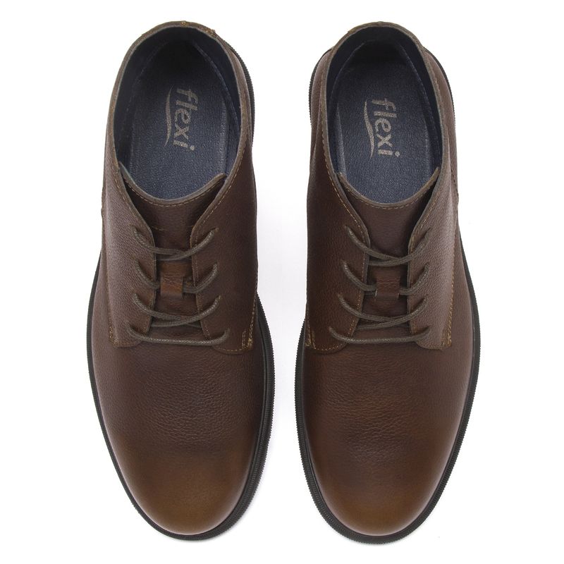 Botín Hombre Fronzi 417007 Café. Botín elaborado en cuero natural que cuenta con el sello de comodidad y estilo de zapatos Flexi. Este producto forma parte de nuestra línea innovadora marcando las tendencias del estilo chunki y preppy aportando ese toque de moda y frescura para la marca, acompañada de sus tres estilos clásicos dándole un balance perfecto. Este calzado cuenta con cordones, suela de flowtek, una plantilla de cuero y forro textil. SKU: 417007CAFE
