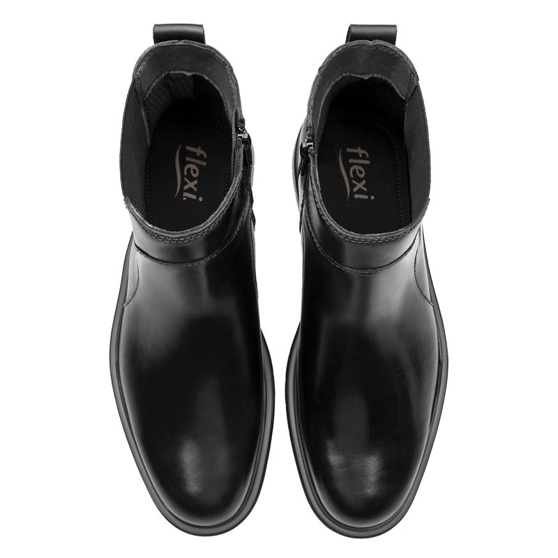 Botín Hombre Kuno 421702 Negro. Botín casual elaborado en cuero natural que cuenta con el sello de comodidad y estilo de zapatos Flexi. Este producto forma parte de nuestra línea casual con un toque biker y suela orgánica está pensada para ofrecer versatilidad y frescura. Este calzado cuenta con una suela de tr expanso / tr compacto, una plantilla de cuero y forro textil. SKU: 421702NEGRO