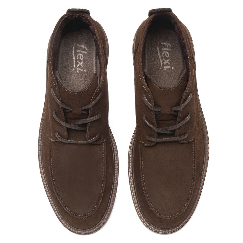 Botín Hombre Okan 412806 Café Chocolate. Botín elaborado en cuero natural que cuenta con el sello de comodidad y estilo de zapatos Flexi. Este producto forma parte de nuestra línea creativa y versátil, lanza un nuevo modelo que te hará sentir moderno y actualizado. Sus gamuzas con ceras hacen que tenga un look casual y a la vez formal dándote la mejor combinación para tus eventos sociales como laborales. Este calzado cuenta con cordones, suela de tr c/cerco, una plantilla de cuero y forro textil. SKU: 412806CHOCOLATE