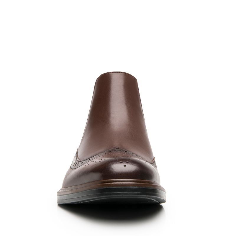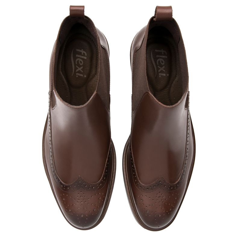 Botín Hombre Parker 400118 Café. Botín chelsea elaborado en cuero natural que cuenta con el sello de comodidad y estilo de zapatos Flexi. Este producto forma parte de nuestra línea semiformal diseñada para un mercado joven. Se refuerza con un nuevo estilo. La línea se constituye de pieles con brillo sutil y elegante, pequeños detalles de contraste, caracterizada con un estilo atemporal ideal para toda ocasión. Hecho con suela ligera y resistente para un calzado más duradero. Este calzado cuenta con una suela de pu, una plantilla de cuero y forro textil. SKU: 400118NOGAL