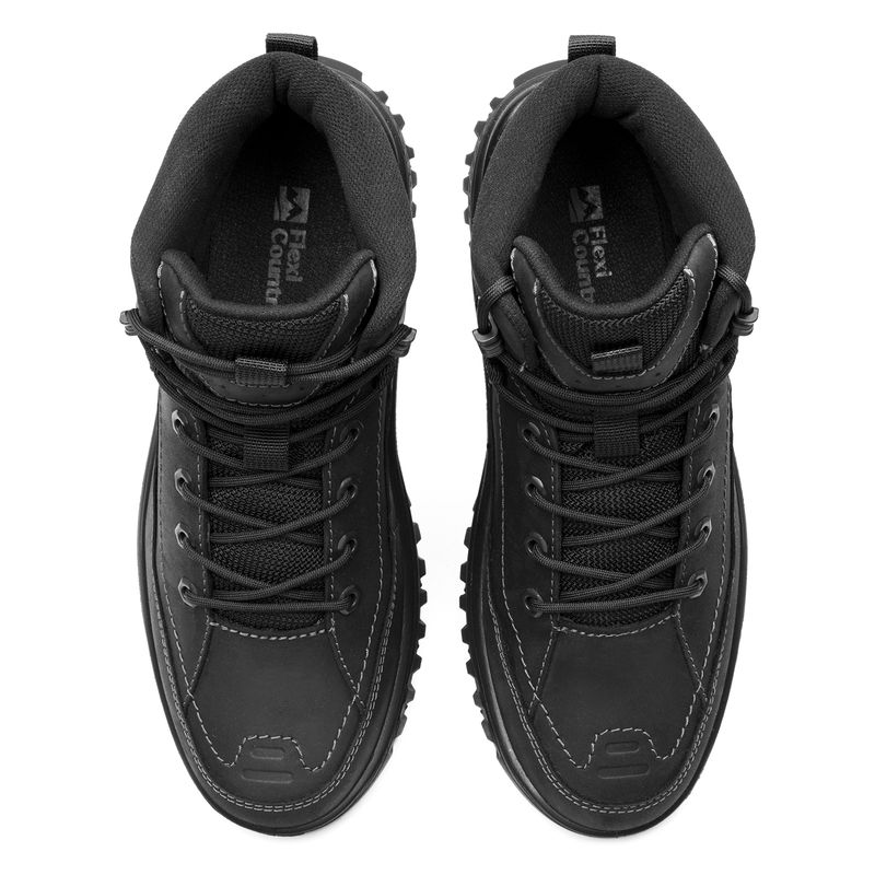 Botín Hombre Thompson 418103 Negro. Botín outdoor elaborado en cuero natural color negro que cuenta con el sello de comodidad y estilo de zapatos Flexi. Este producto forma parte de nuestra línea outdoor diseño pensado especialmente para tu comodidad y un calzado duradero por sus materiales de alta calidad. Los cuales te brindaran comodidad y te acompañaran en tus actividades, ya sea para un fin de semana en la naturaleza o para tu día laboral. Este calzado cuenta con una suela de pu, una plantilla de cuero y forro textil. SKU: 418103NEGRO