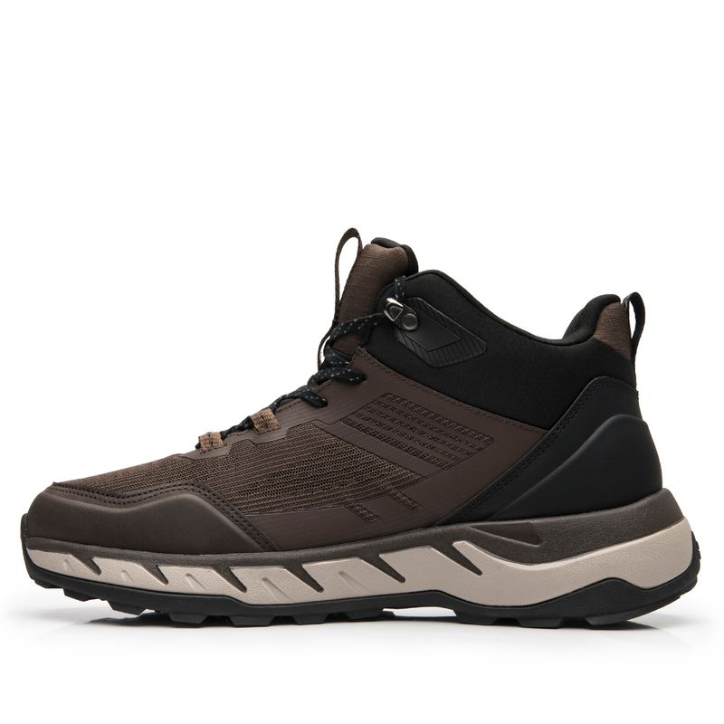 Botín Hombre Zegama 421104 Café. Botín outdoor elaborado en eco cuero y textil. Línea outdoor inspirada en el senderismo, con un diseño de líneas dinámicas, colores frescos y materiales resistentes para las actividades al aire libre, puede ofrecer una opción moderna, funcional y con estilo para quienes disfrutan de la aventura. Este estilo cuenta tecnologia WaterProof, suela de eva / hule, una plantilla de textil y forro textil. SKU:421104CAFE