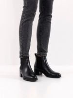 Botín Mujer 25026-41 Negro. Descubre elegancia moderna con estos botines Chelsea de caña corta y punta redonda, realzados por un tacón bloque de 4,5 cm que estiliza la figura y garantiza confort en cada paso. El diseño sin cierre permite calzarlos fácilmente, fusionando practicidad y sofisticación para cualquier ocasión urbana. Su altura de caña de 10 cm aporta sujeción sin sacrificar estilo, convirtiéndolos en el complemento perfecto para conjuntos casuales y formales por igual. SKU: 2502641NEGRO