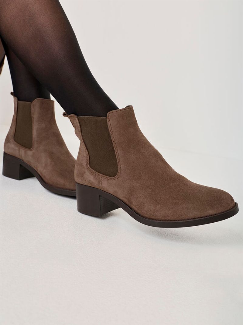Botín Mujer 25026-41 Taupe. Descubre elegancia moderna con estos botines Chelsea de caña corta y punta redonda, realzados por un tacón bloque de 4,5 cm que estiliza la figura y garantiza confort en cada paso. El diseño sin cierre permite calzarlos fácilmente, fusionando practicidad y sofisticación para cualquier ocasión urbana. Su altura de caña de 10 cm aporta sujeción sin sacrificar estilo, convirtiéndolos en el complemento perfecto para conjuntos casuales y formales por igual. SKU: 2502641TAUPE