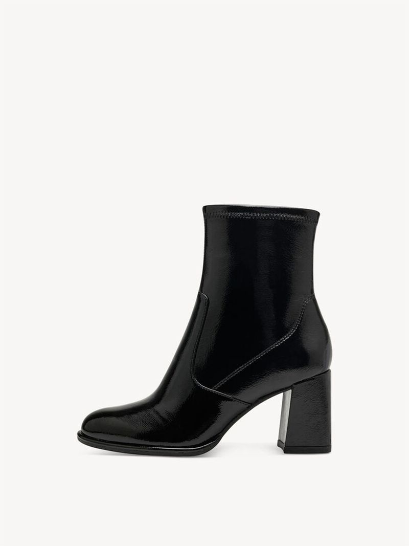 Botín Mujer 25357-41 Negro. Impulsa tu estilo con las botas de tacón Tamaris Essentials, diseñadas para destacar cada paso. Punta redonda y tacón de bloque de 7,5 cm ofrecen comodidad superior, mientras el práctico cierre de cremallera y la caña corta de 15,5 cm brindan ajuste perfecto. Disfruta cada movimiento gracias a la innovadora tecnología A.Slide/A.Shokk y la plantilla COMF.LIN+TOUCH, que aseguran suavidad y confort en tus días más exigentes. SKU: 2535741NEGROCHAROL