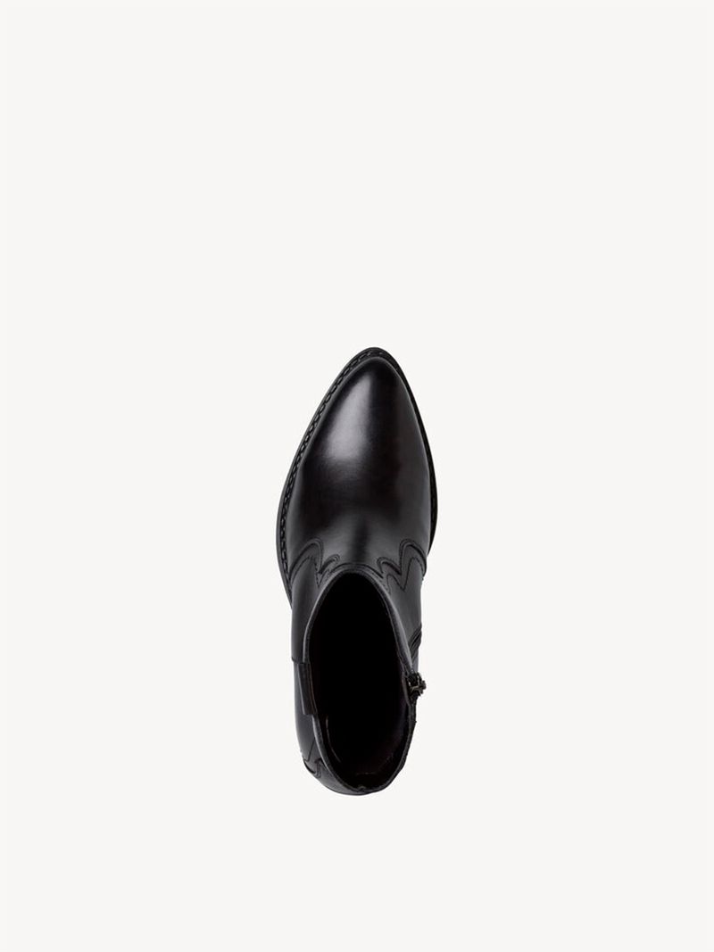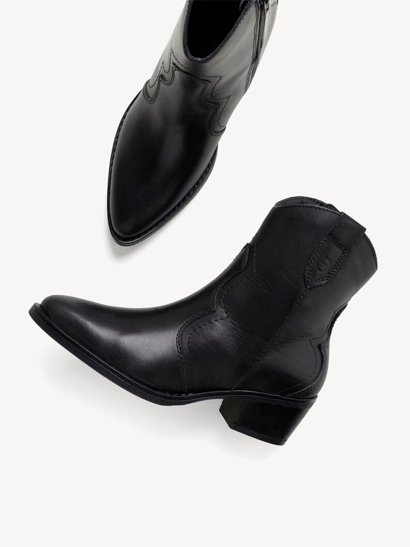 Botín Mujer 25702-41 Negro. Eleva tu estilo con estos botines de tacón bloque Tamaris, perfectos para destacar tu look urbano. Su punta afilada y la altura del tacón de 6 cm te ofrecen una silueta elegante sin sacrificar la comodidad gracias a la tecnología Comf.Lin + Touch. El práctico cierre de cremallera y la caña de 13 cm los convierten en el complemento ideal para cualquier ocasión, fusionando modernidad y sofisticación en cada paso. SKU: 2570241NEGRO