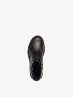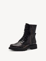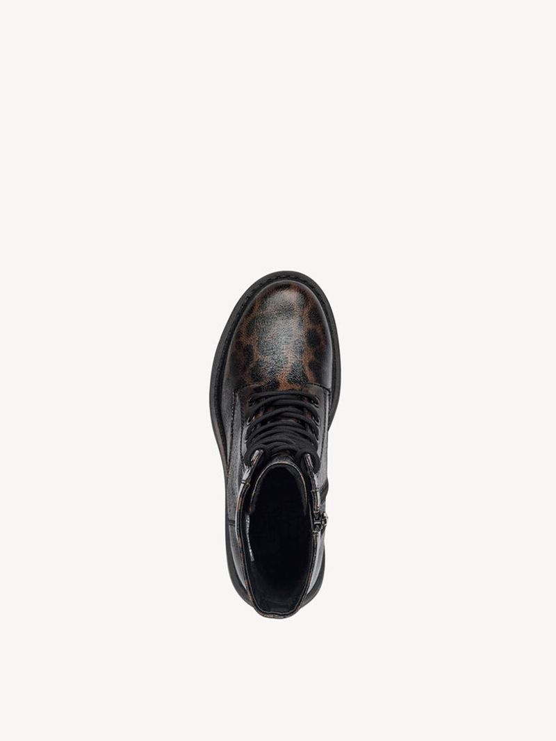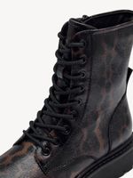 Botín Mujer 25918-43 Leopardo. Estilo urbano y comodidad se unen en estos Lace Boot Flat Tamaris de media caña, punta redonda y diseño sin tacón. Su altura de caña de 17,5 cm, suela de 4,5 cm y la innovadora tecnología Touch-It garantizan confort diario. Con cierre de cordones y cremallera, estos botines ofrecen versatilidad y practicidad en cada paso, ideales para acompañarte en tus jornadas más activas con el inconfundible sello de Tamaris. SKU: 2591843LEOPARDO