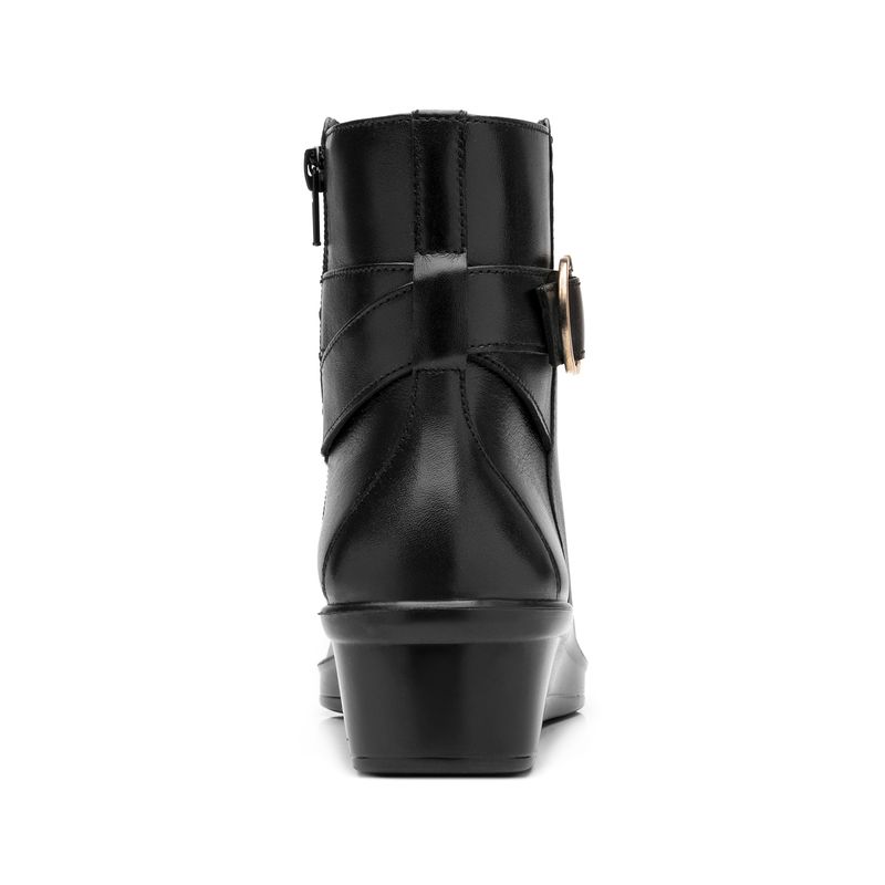 Botín Mujer Anansa 136705 Negro. Botín con cuña elaborado en cuero natural. Línea para dama que ofrece gran confort y durabilidad por su suela con una pequeña cuña. Entre sus estilos cuenta con slip on, botines y una bota alta con un detalle de elástico que brinda un ajuste perfecto. Este estilo cuenta con una suela de pu, una plantilla de cuero y forro textil. En una altura de tacón de 4.9 cm. SKU: 136705NEGRO