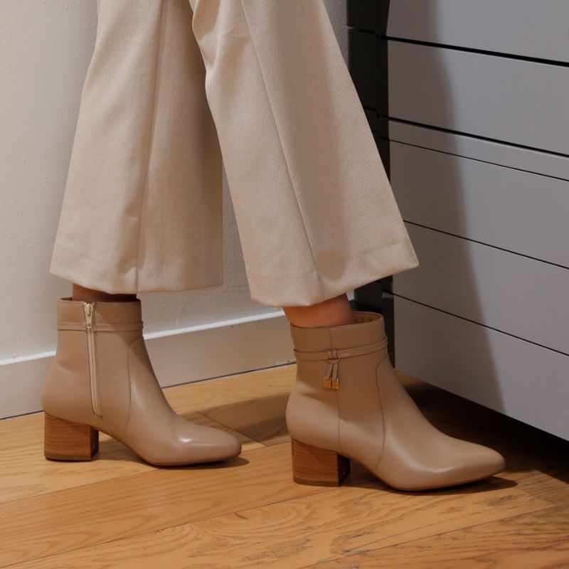 Botín Mujer Annette 137504 Beige. Botín puntal de tacón elaborado en cuero natural que cuenta con el sello de comodidad y estilo de zapatos Flexi. Este producto forma parte de nuestra línea para dama con punta almendrada y tacón bajo con una amplia variedad de estilos como destalonado, zapatilla y botín. Sus materiales con textura y colores de temporada los hacen irresistibles y una gran opción para la temporada. Este calzado cuenta con una suela de abs - tpu / hule, una plantilla de cuero y sin forro. Altura tacón 5.5cm. SKU: 137504NEUTRO