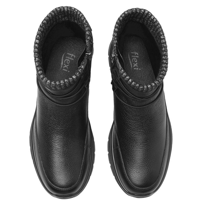 Botín Mujer Azure 130204 Negro. Botín casual elaborado en cuero natural que cuenta con el sello de comodidad y estilo de zapatos Flexi. Este producto forma parte de nuestra línea casual de siluetas clásicas, con estilos renovados que destacarán esta temporada por sus materiales con detalles cálidos, prácticos y cómodos. Este calzado cuenta con cierre interno, suela de pu, una plantilla de cuero y forro textil. SKU: 130204NEGRO