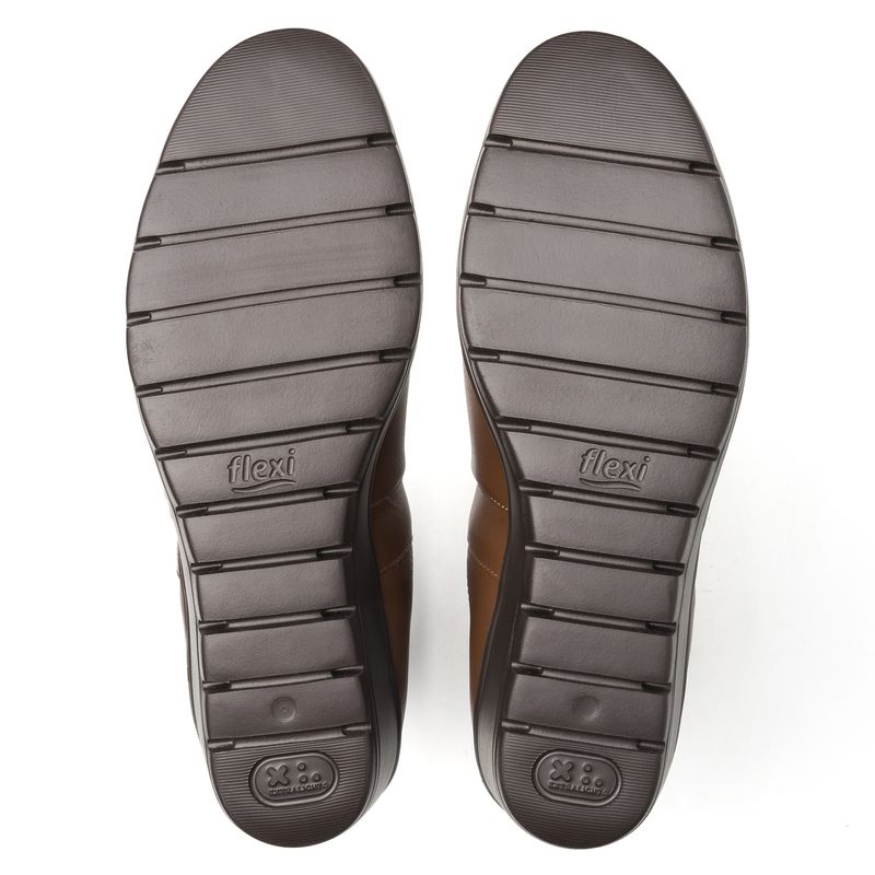 Botín Mujer Cataleya 104821 Café Osc.. Botín confort cuña elaborado en cuero natural que cuenta con el sello de comodidad y estilo de zapatos Flexi. Este producto forma parte de nuestra línea para dama de cuña extra ligera, ideal para un look casual y cómodo. Sus diseños son clásicos, con materiales innovadores que favorecen su ajuste. Este calzado cuenta con ajuste elasticado, una suela de extralight, una plantilla de cuero y forro textil. SKU: 104821DARKTAN