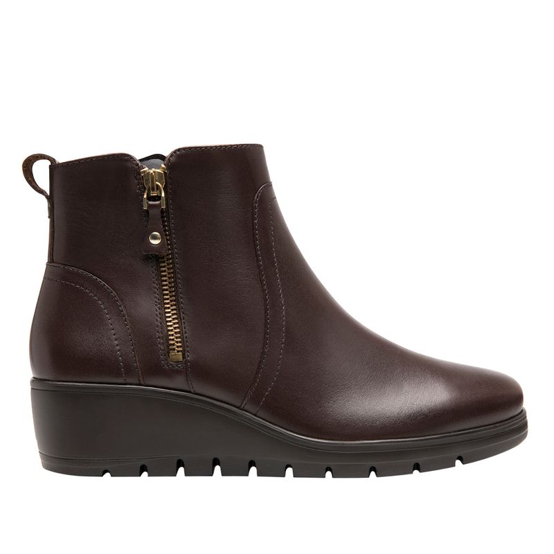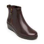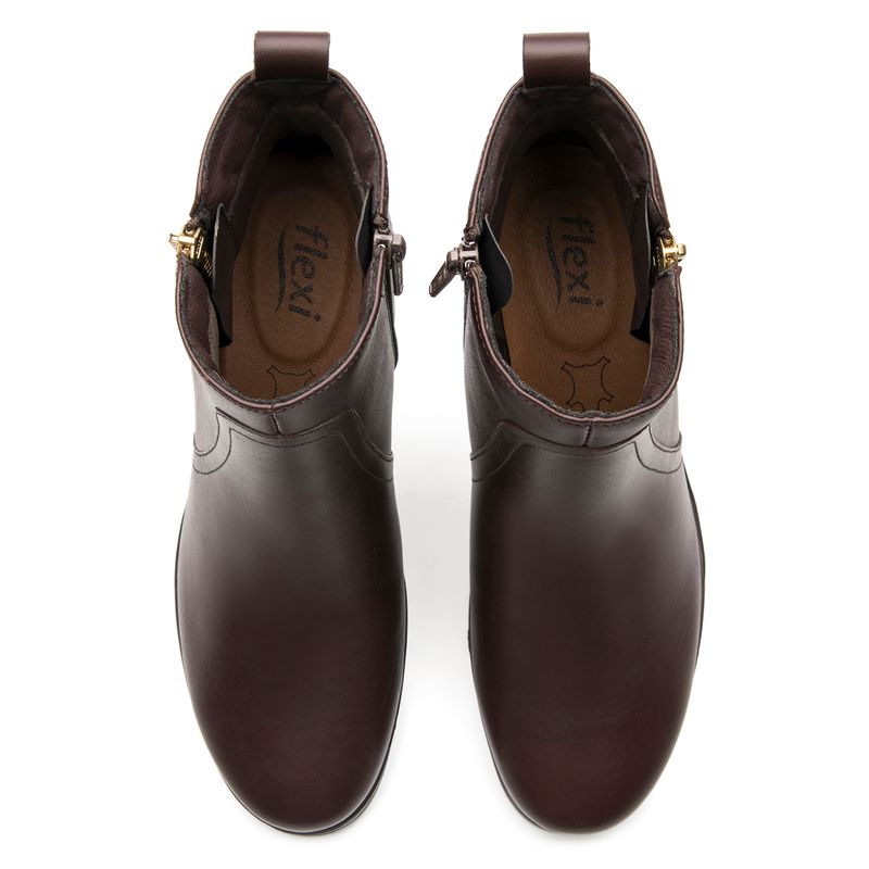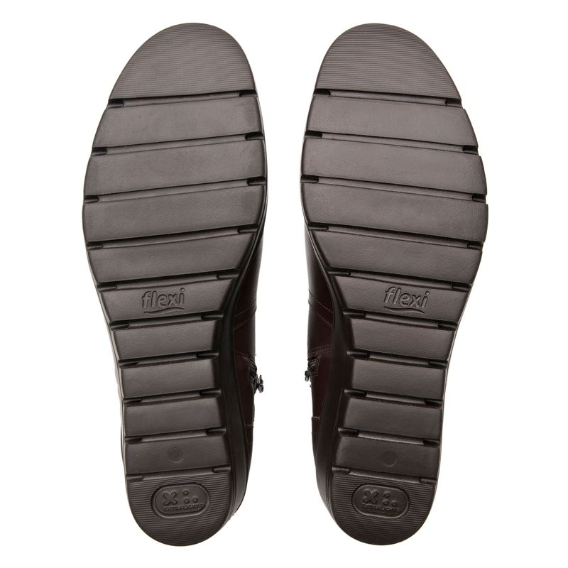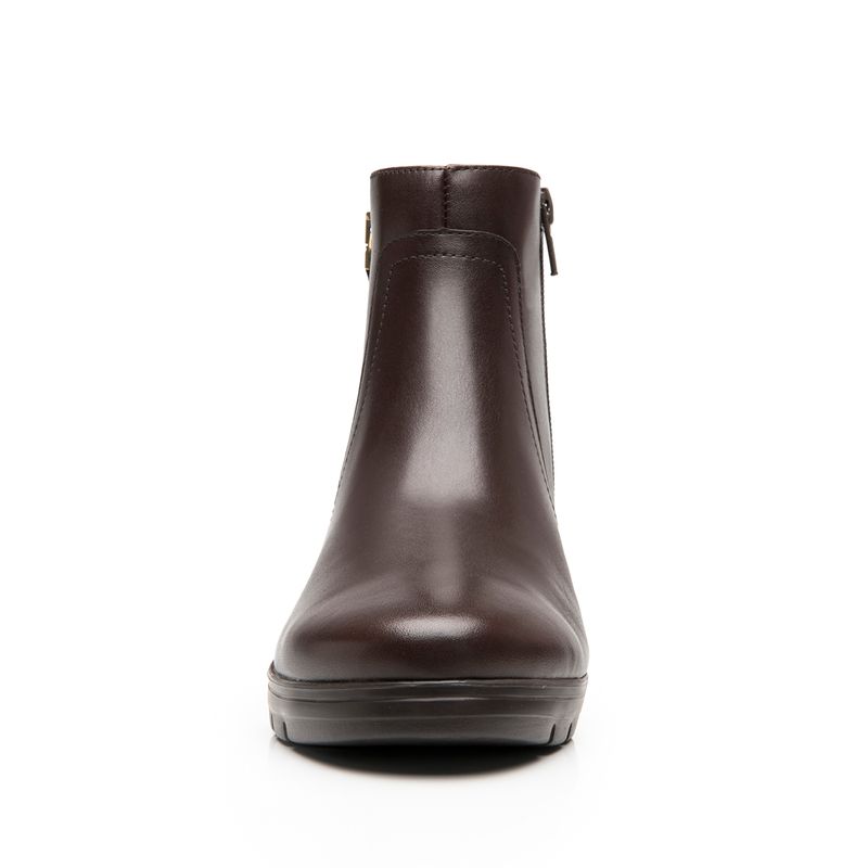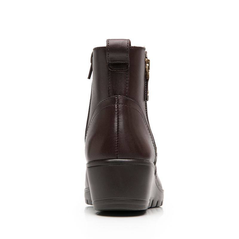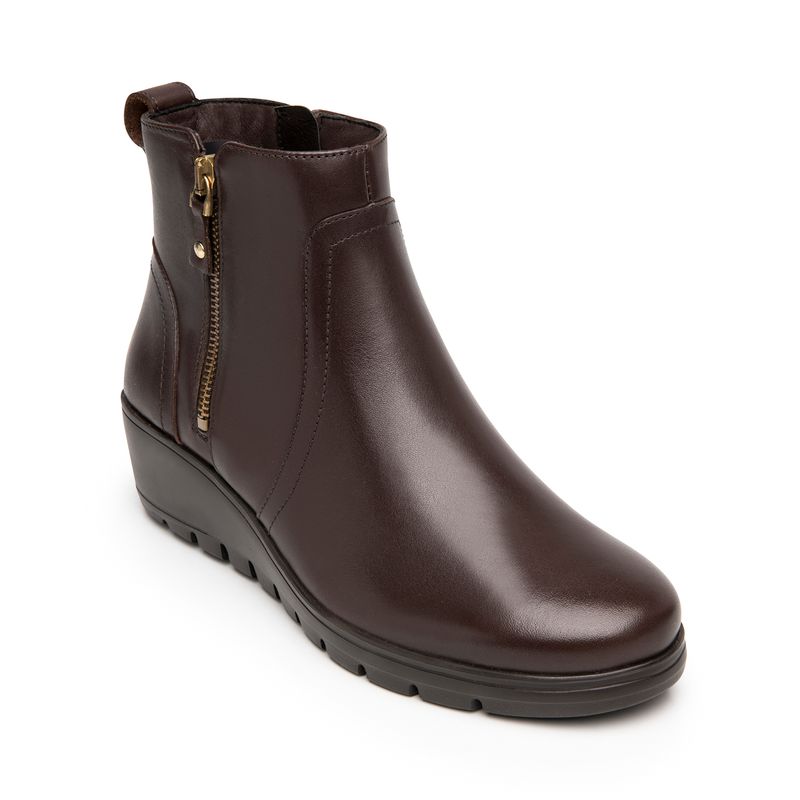 Botín Mujer Cataleya 104827 Café Madera. Botín casual suela dentada elaborado en cuero natural que cuenta con el sello de comodidad y estilo de zapatos Flexi. Este producto forma parte de nuestra línea para dama de cuña extra ligera, ideal para un look casual y cómodo. Sus diseños son clásicos, con materiales innovadores y detalles como cierres, herrajes y colores en tendencia. Este calzado cuenta con una suela de extralight, una plantilla de cuero y sin forro. Altura plataforma 4.2cm. SKU: 104827MADERA