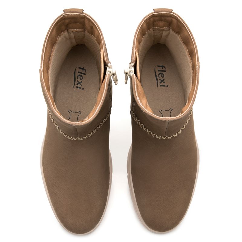 Botín Mujer Dariela 137804 Taupe. Botín casual suela dentada elaborado en cuero natural que cuenta con el sello de comodidad y estilo de zapatos Flexi. Este producto forma parte de nuestra línea que transmite un estilo urbano y de moda. Su suela chunky protagonista, brinda altura y comodidad ya que además es ligera y duradera por su construcción. Son una elección atrevida y con mucho estilo. Este calzado cuenta con una suela de pu, una plantilla de cuero y forro textil. Altura plataforma 5cm. SKU: 137804TAUPE