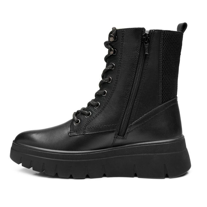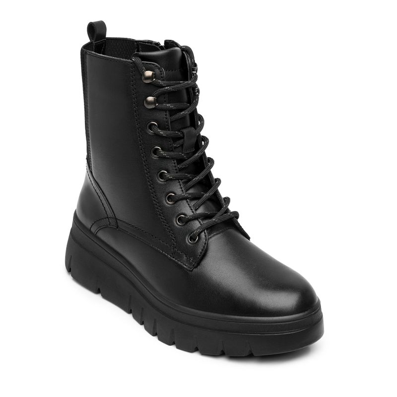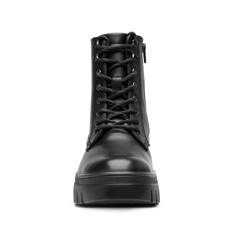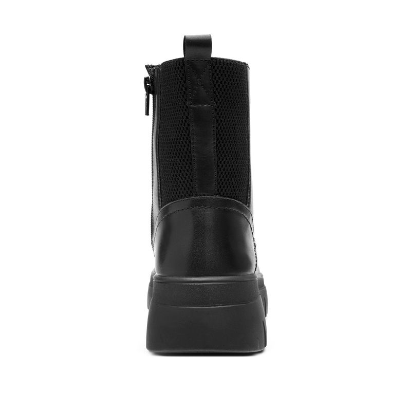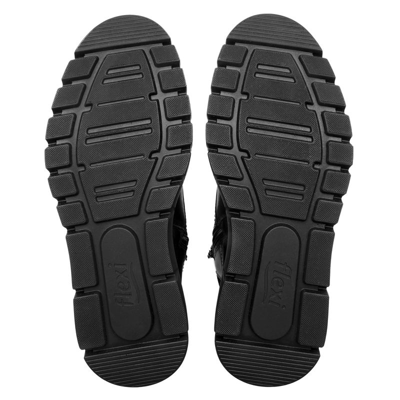 Botín Mujer Dariela 137808 Negro. Botín casual suela dentada elaborado en cuero natural que cuenta con el sello de comodidad y estilo de zapatos Flexi. Este producto forma parte de nuestra línea que transmite un estilo urbano y de moda. Su suela chunky protagonista, brinda altura y comodidad ya que además es ligera y duradera por su construcción. Son una elección atrevida y con mucho estilo. Este calzado cuenta con una suela de pu, una plantilla de cuero y forro textil. Altura de la plataforma 5cm. SKU: 137808NEGRO