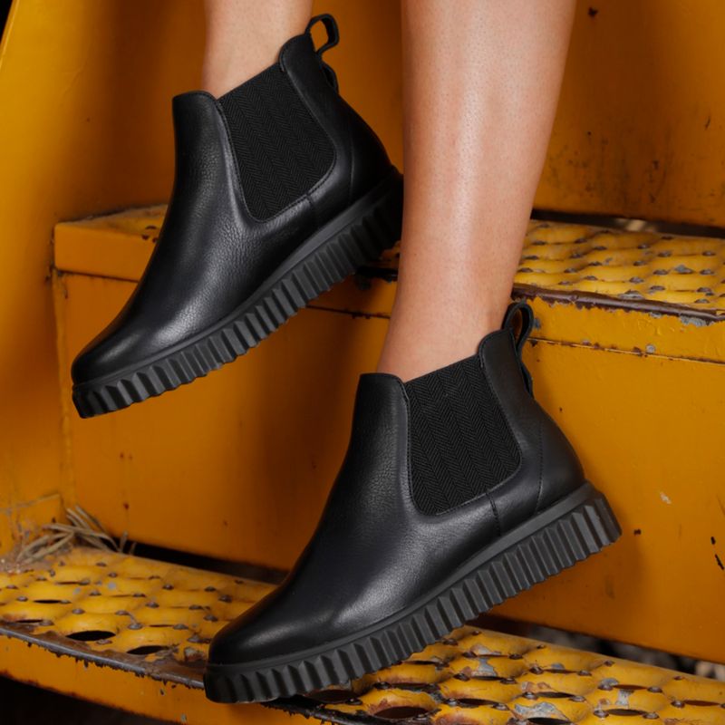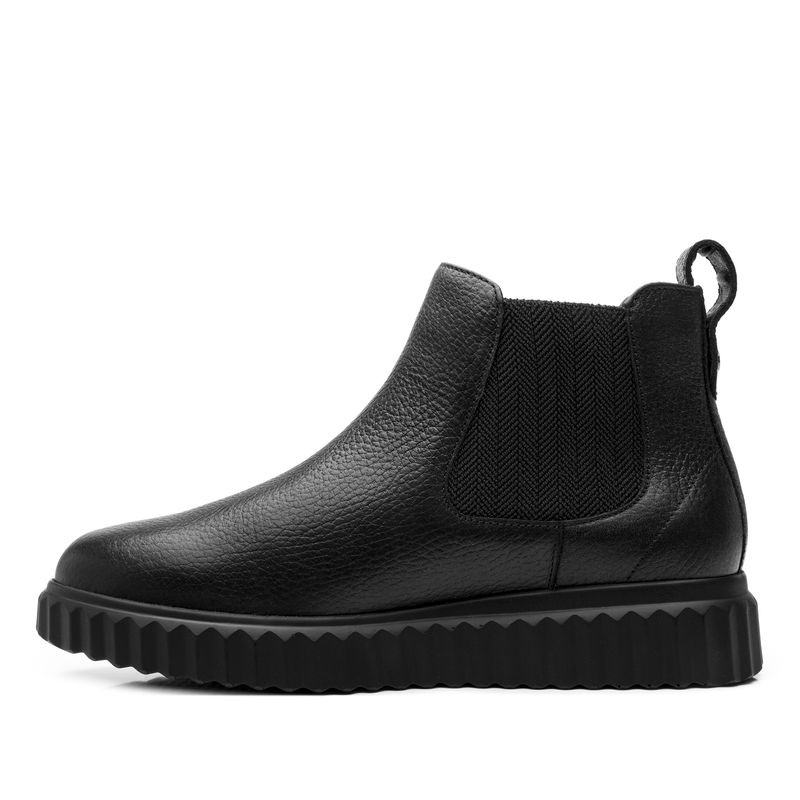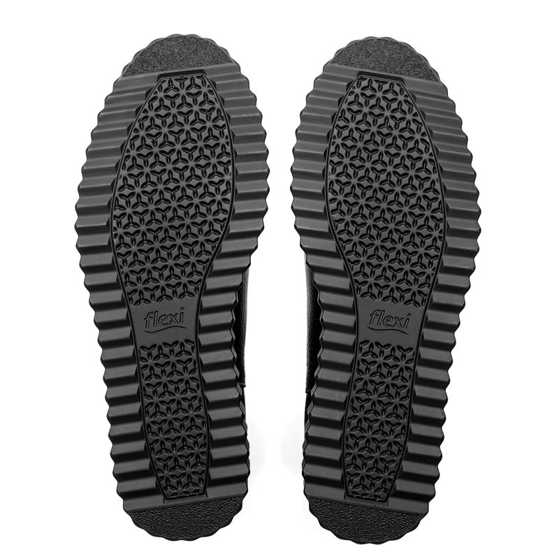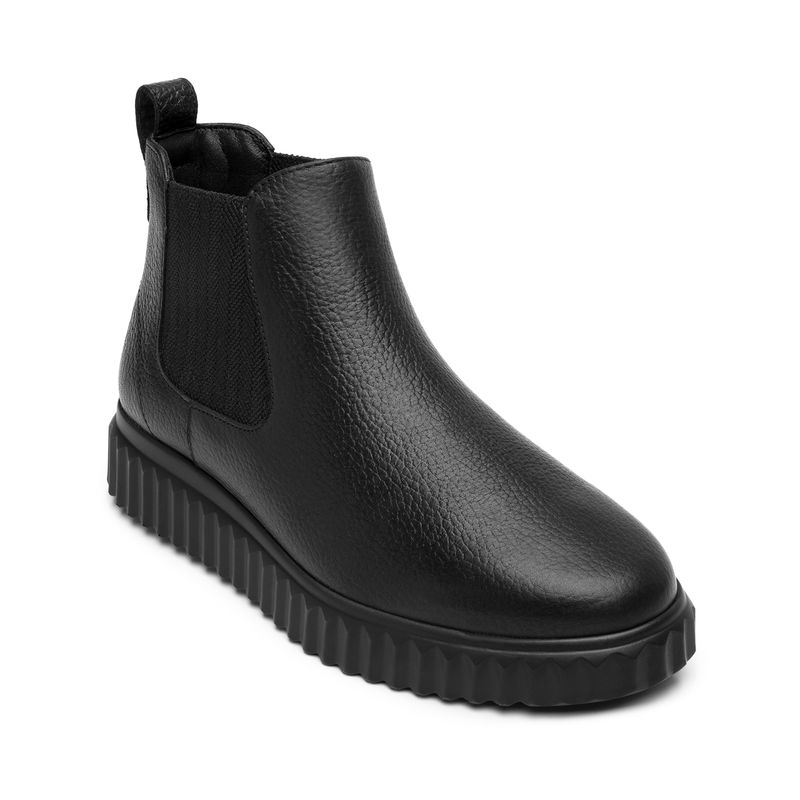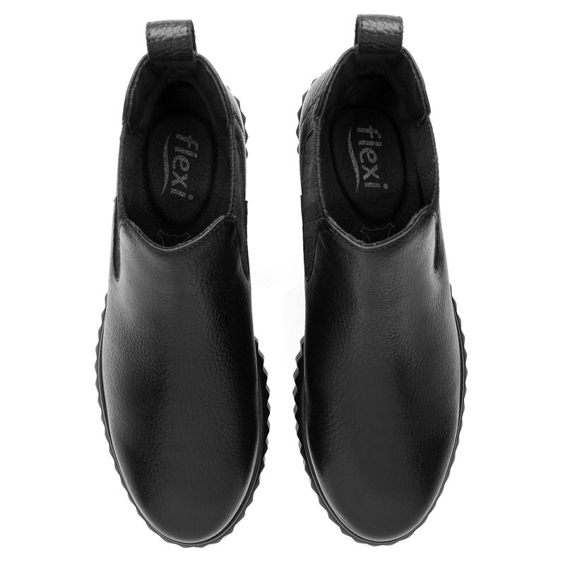 Botín Mujer Eileen 134704 Negro. Botín chelsea elaborado en cuero natural que cuenta con el sello de comodidad y estilo de zapatos Flexi. Este producto forma parte de nuestra línea casual, sus cortes en cuero y su suela corrida con textura te harán lucir cómoda y a la moda en cualquier momento. Este calzado cuenta con una suela de pu, una plantilla de cuero y forro textil. Altura de la suela 3.7cm. SKU: 134704NEGRO