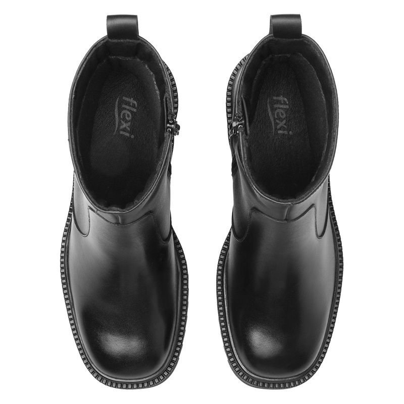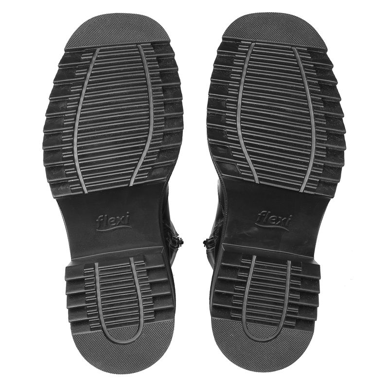 Botín Mujer Francis 130102 Negro. Botín tacón medio elaborado en cuero natural que cuenta con el sello de comodidad y estilo de zapatos Flexi. Este producto forma parte de nuestra línea de dama casual, renovada con una punta cuadrada y una ligera plataforma que le da ese look actual pero cómodo para llevar durante el día. Sus materiales, acabados y detalles las convierten en un must. Este calzado cuenta con cierre interno, suela de tr, una plantilla de cuero y forro textil. SKU: 130102NEGRO