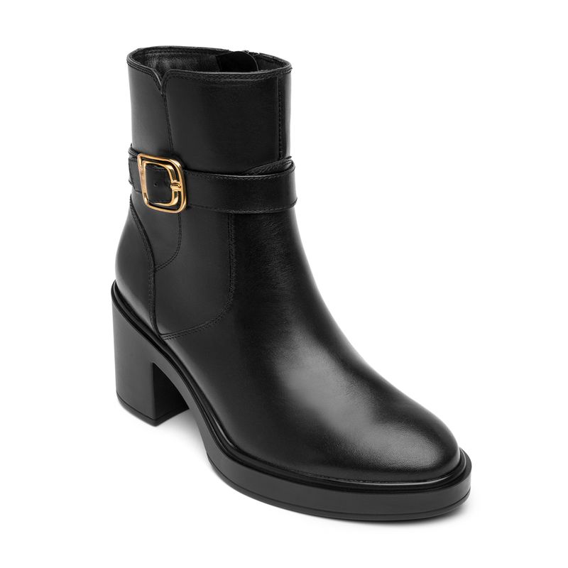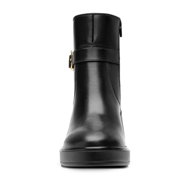 Botín Mujer Isbelle 130308 Negro. Botín casual elaborado en cuero natural que cuenta con el sello de comodidad y estilo de zapatos Flexi. Este producto forma parte de nuestra línea de dama casual con un look actual y versátil que ofrece una experiencia de confort al usarlos. Su propuesta de diseños destacan por sus detalles únicos en un monk strap con hebillas, botín y bota alta con un detalle de cierre, adaptándose para un calce ideal. Fabricados en cueros naturales, con brillo y acabados que las hacen únicas. Este calzado cuenta con una suela de pu, una plantilla de cuero y forro textil. Altura del tacón 7.6cm. SKU: 130308NEGRO