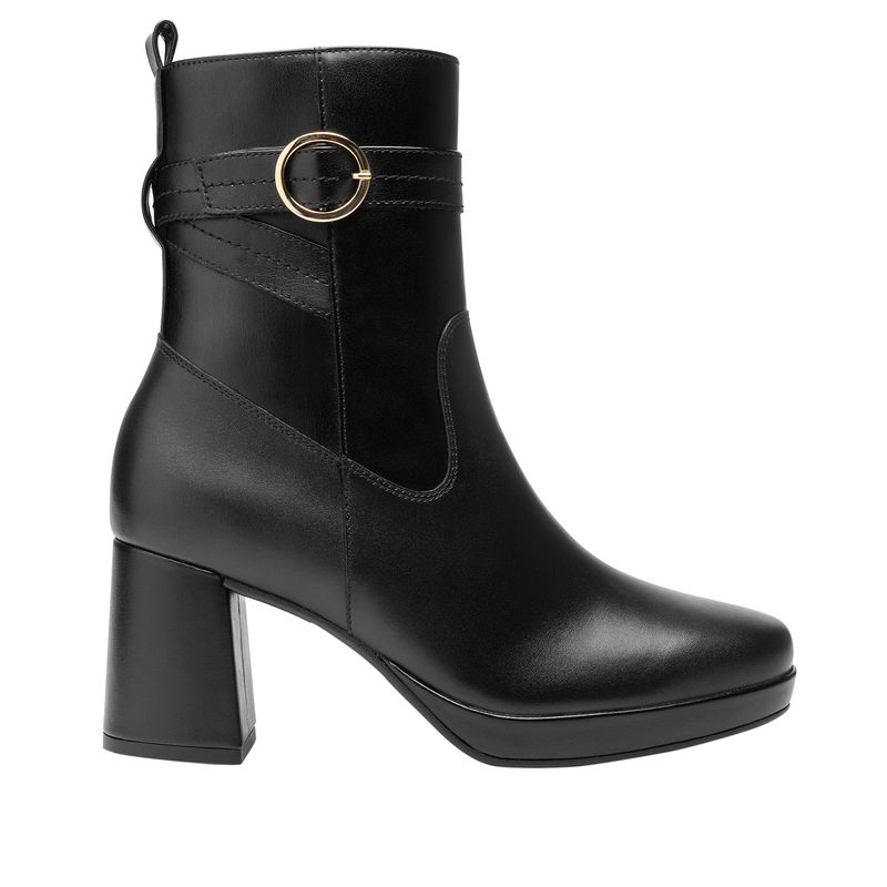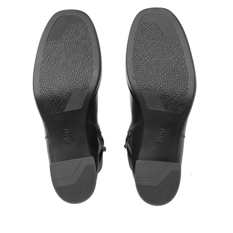 Botín Mujer Mackenzie 127204 Negro. Botín tacón medio elaborado en cuero natural que cuenta con el sello de comodidad y estilo de zapatos Flexi. Este producto forma parte de nuestra línea de dama semiformal con un moderno tacón en bloque y punta semicuadrada. Sus estilos expresan gran personalidad con cueros atemporales que ofrecen confort y durabilidad. Este calzado cuenta con cierre interno, una suela de abs - tpu / pu - hule, una plantilla de cuero y forro textil. SKU: 127204NEGRO