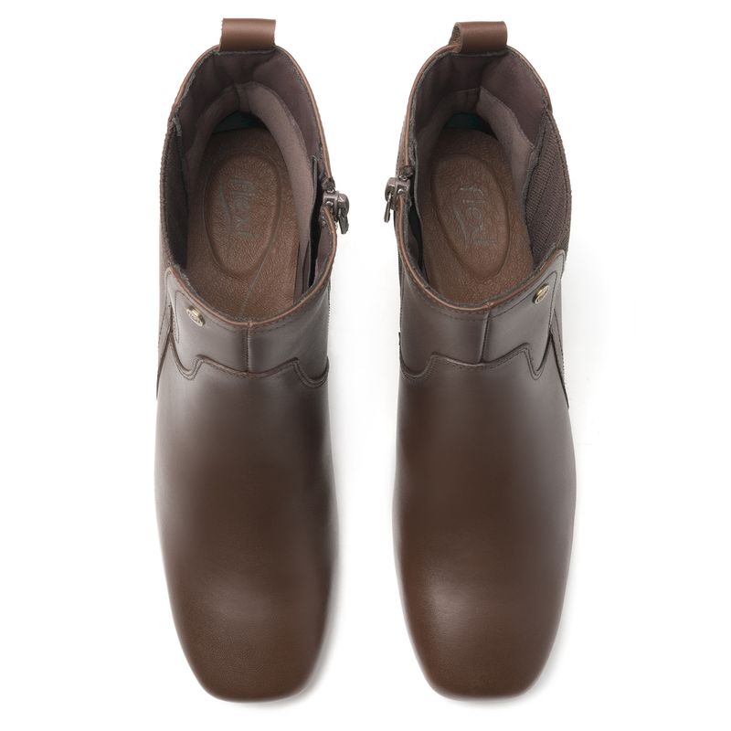 Botín Mujer Marione 119709 Café Osc.. Botín tacón bajo elaborado en cuero natural que cuenta con el sello de comodidad y estilo de zapatos Flexi. Este producto forma parte de nuestra línea de dama semiformal con diseños clásicos y renovados por su punta cuadrada. Sus detalles y materiales la hacen elegante y sofisticada. Este calzado cuenta con cierre interno, una suela de abs - tpu / hule, una plantilla de cuero y forro textil. SKU: 119709DARKTAN