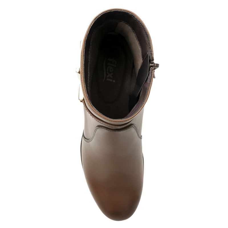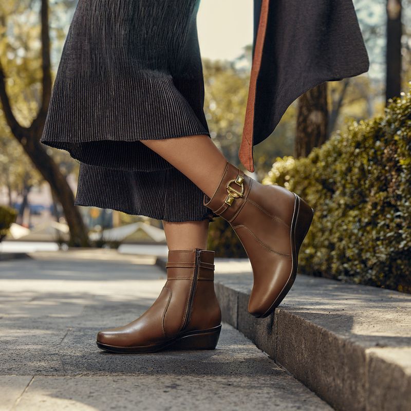 Botín Mujer Yulisa 45221 Café. Botín con plataforma elaborado en cuero que cuenta con el sello de comodidad y estilo de zapatos Flexi. Este producto forma parte de nuestra línea de dama semivestir con estilos actuales que brindarán altura y comodidad por su plataforma. Este calzado cuenta con suela de pu, plantilla de cuero y forro textil. SKU: 45221TAN