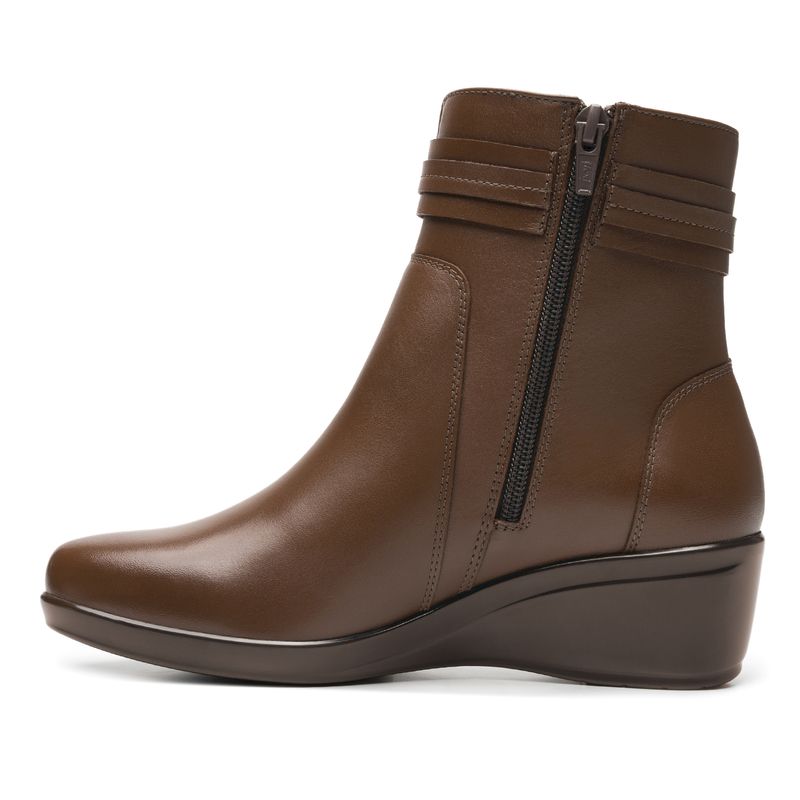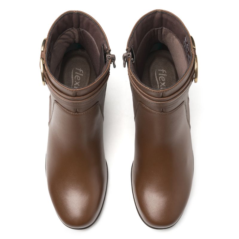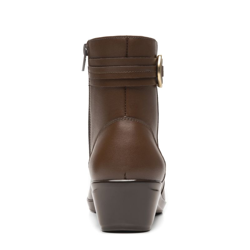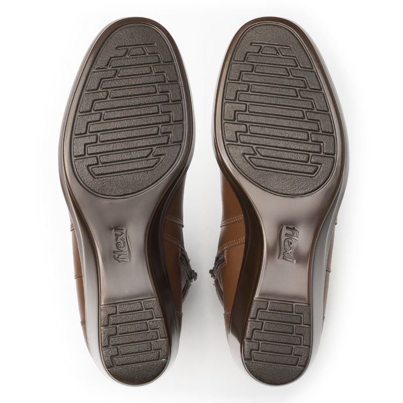 Botín Mujer Yulisa 45235 Café. Botín cuña elaborado en cuero natural que cuenta con el sello de comodidad y estilo de zapatos Flexi. Este producto forma parte de nuestra línea de dama semiformal con estilos actuales que brindarán un poco de altura y comodidad por su suela de cuña. Sus detalles destacarán esta temporada. Este calzado cuenta con cierre interno, una suela de pu, una plantilla de cuero y forro textil. SKU: 45235CAFE