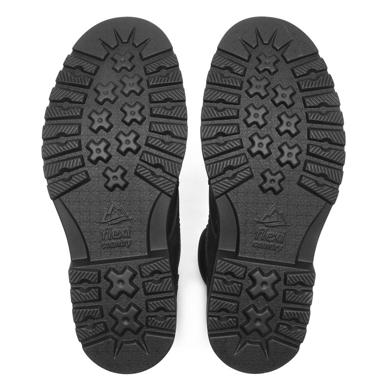 Botín Outdoor Hombre Mattos 417401 Negro. Botín elaborado en cuero natural que cuenta con el sello de comodidad y estilo de zapatos Flexi. Este producto forma parte de nuestra línea Mattos, discreta y visualmente atractiva por sus estilos clásicos, pensada para aquellas personas que aman explorar la naturaleza y les gusta sentirse cómodos y seguros con su calzado. Adecuado tanto para el concepto outdoor urbano. Este calzado cuenta con una suela de pu pintado, una plantilla de cuero y forro textil. SKU: 417401NEGRO