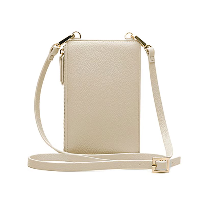 Porta-celular elaborado en ecocuero color ivory con forro textil que cuenta con el sello de calidad Flexi. Este producto forma parte de nuestra línea de bolsos con silueta moderna y super práctica para llevar contigo solo tus básicos, como teléfono, tarjetas y efectivo hacen de este articulo un must de temporada. Con un largo de 19 cm. Con una altura de 12 cm y con un ancho de 2 cm.