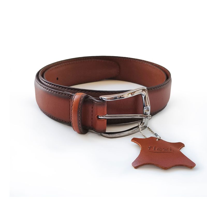 cinturón modelo amadeu elaborado en cuero natural color cognac que cuenta con el sello de calidad Flexi. Este producto forma parte de nuestra línea de cinturones para caballero, confeccionados en cuero de alta calidad. Diseñados para el hombre moderno que valora tanto la estética como la funcionalidad, nuestros cinturones combinan una fabricación robusta con un acabado refinado que aporta sofisticación a cualquier look. Ya sea para el trabajo, una ocasión especial o un día casual, estos cinturones son el accesorio esencial que complementa perfectamente tu atuendo. Con un ancho de 3.5 cm. Con un largo desde 83 cm hasta 113.5 cm de acuerdo a cada talla.