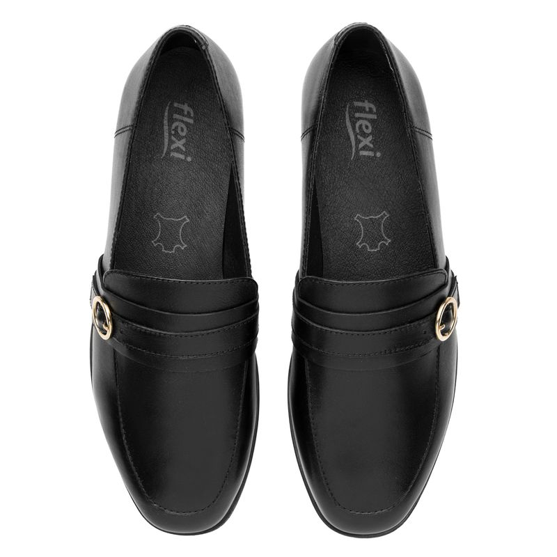 Mocasín Mujer Lorela 137203 Negro. Mocasín casual elaborado en cuero natural que cuenta con el sello de comodidad y estilo de zapatos Flexi. Este producto forma parte de nuestra línea casual con diseños juveniles y atemporales. Entre sus diseños encontrarás estilos Mary Jane que son tendencia esta temporada, mocasines clásicos con una silueta actual y un derby clásico. Sus colores otoñales complementarán y sumarán a los looks de la temporada. Este calzado cuenta con una suela de tr, una plantilla de cuero y forro ecocuero. Altura tacón 2.5cm. SKU: 137203NEGRO
