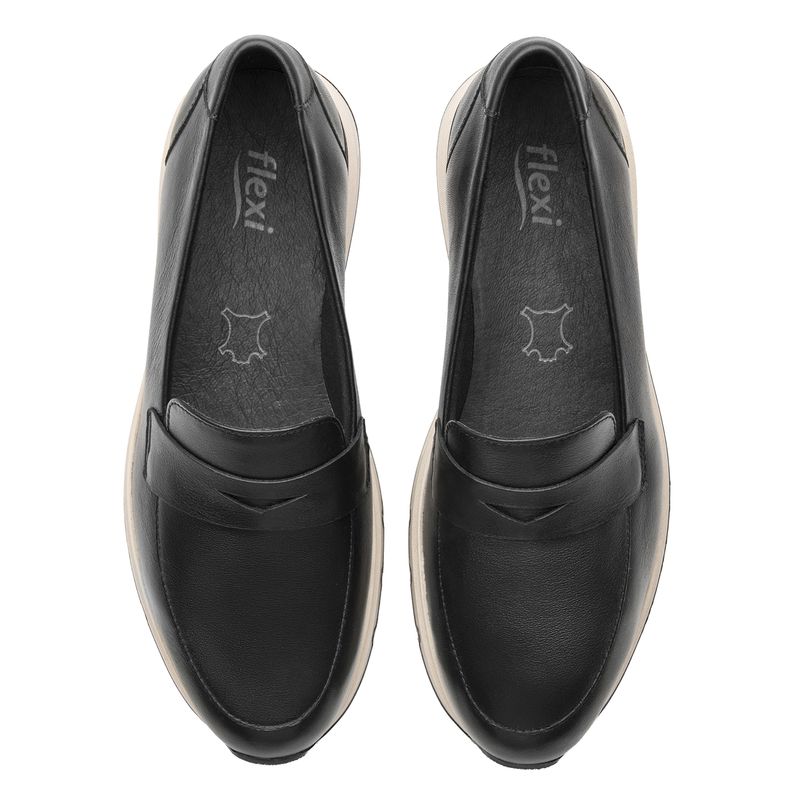 Mocasín Mujer Mildred 137002 Negra. Mocasín casual elaborado en cuero que cuenta con el sello de comodidad y estilo de zapatos Flexi. Este producto forma parte de nuestra línea casual de dama con diseños en cuero, en colores clásicos y metálicos. Es un clásico versátil para tus looks diarios. Este calzado cuenta con una suela de tr expanso / tr compacto, una plantilla de cuero y forro textil. SKU: 137002NEGRO