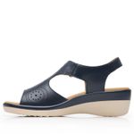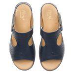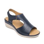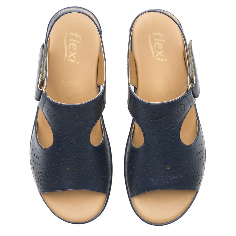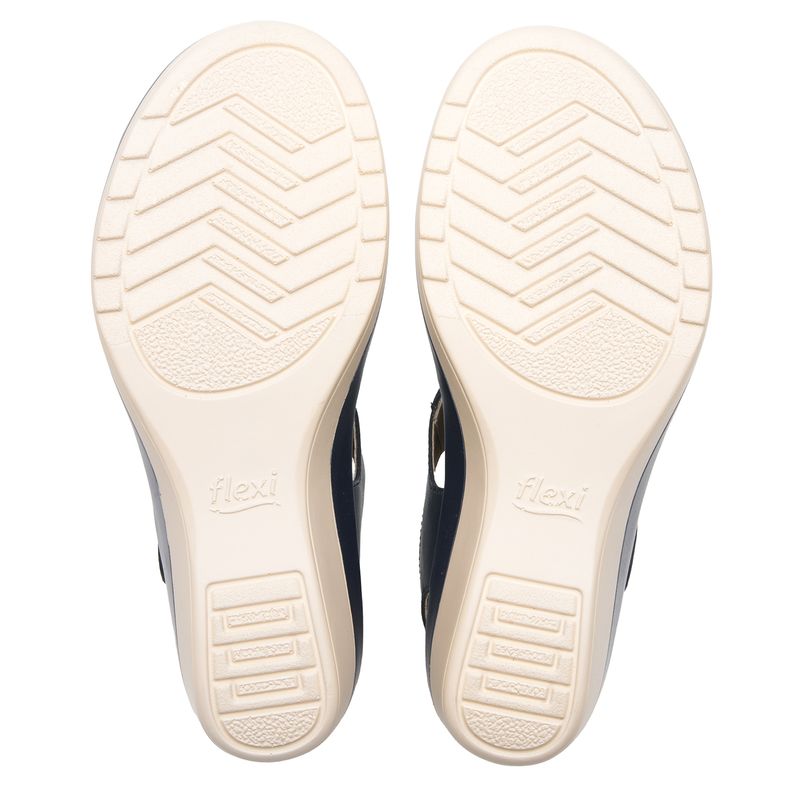 Sandalia Mujer Amapola 116013 Azul Marino. Sandalia cuña baja elaborada en cuero que cuenta con el sello de comodidad y estilo de zapatos Flexi. Este producto forma parte de nuestra línea de sandalia para dama con combinación de materiales y suela de cuña con contraste de textura, luce actual y con gran confort por su plantilla acojinada de cuero. Este calzado cuenta con velcro, suela de pu, plantilla de cuero y forro de cuero. Altura máxima 5.2 cm. SKU: 116013MARINO