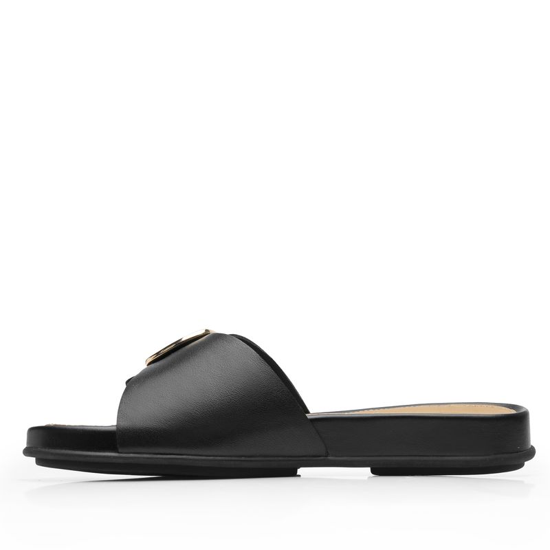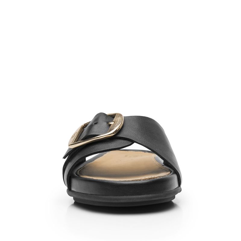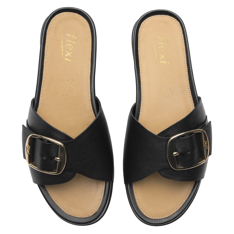 Sandalia Mujer Caterina 133601 Negro. Sandalia confort casual elaborada en cuero que cuenta con el sello de comodidad y estilo de zapatos Flexi. Este producto forma parte de nuestra línea de sandalias casuales para estar cómoda en múltiples actividades y lucir con estilo. Están diseñadas para abrazar el pie de manera que te sientas segura al caminar y sus colores son ideales para agregar un toque de color a tus looks esta temporada. Cuenta con una plantilla que copia la anatomía del pie para un mayor confort. Este calzado cuenta con una suela de pu / hule, una plantilla de cuero y forro ecocuero. Altura 2.5 cm. SKU: 133601NEGRO