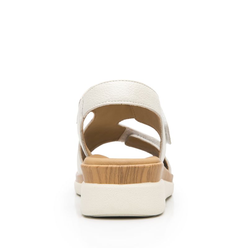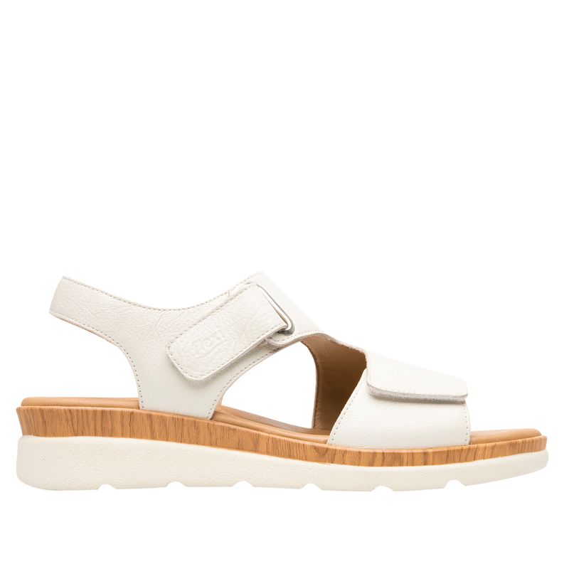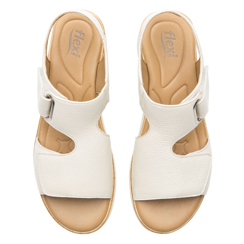 Sandalia Mujer Dariana 124210 Blanco Marfil. Sandalia cuña confort elaborada en cuero que cuenta con el sello de comodidad y estilo de zapatos Flexi. Este producto forma parte de nuestra línea de sandalias de dama para un look casual diseñada para brindarte el mejor confort. Cuenta con una plantilla acojinada que te hará sentir cómoda a cada paso, además sus cortes de cuero, acojinados y con velcros, te brindarán la transpiración necesaria y gran durabilidad. Este calzado cuenta con velcro, suela de pu, plantilla de cuero y forro ecocuero. Altura 4.1 cm. SKU: 124210HUESO