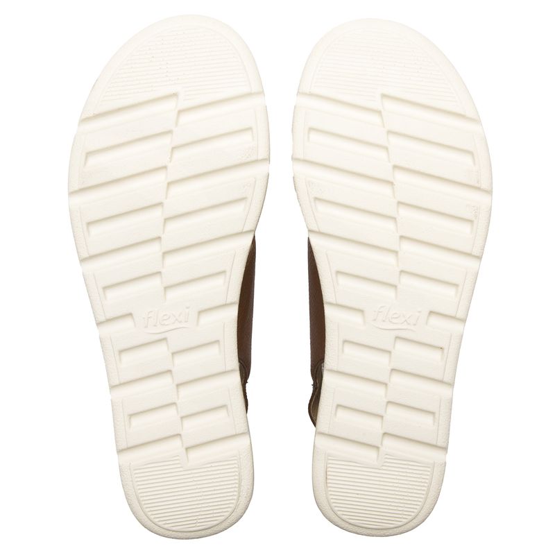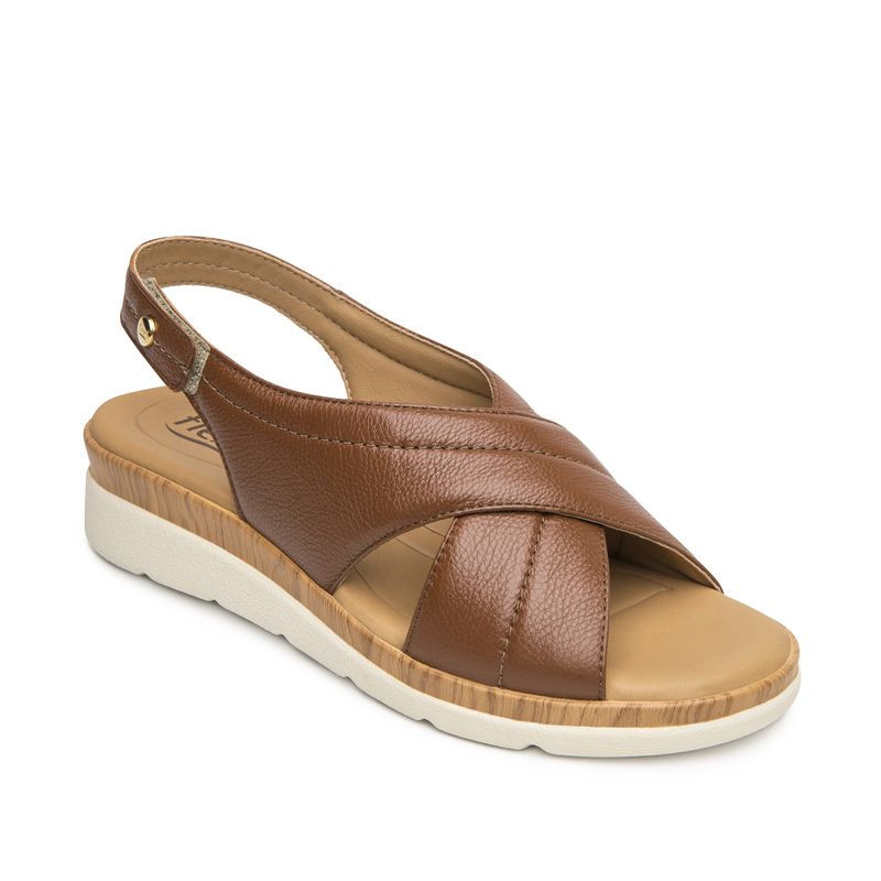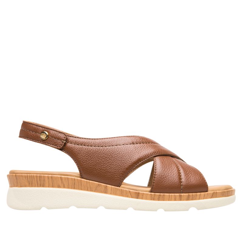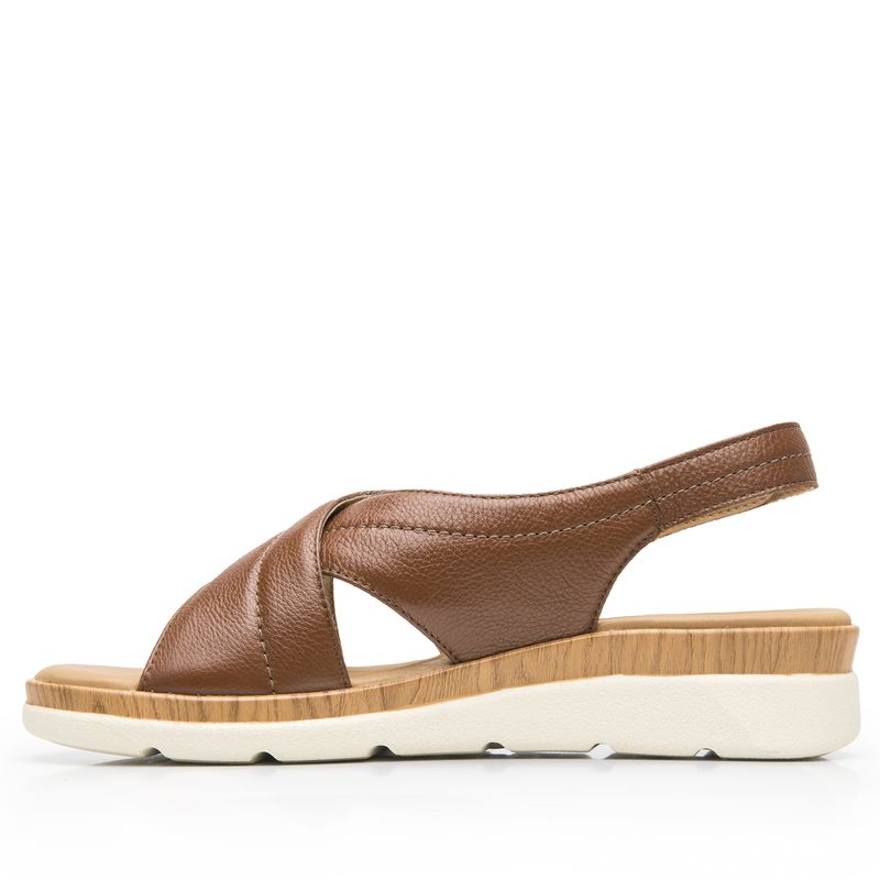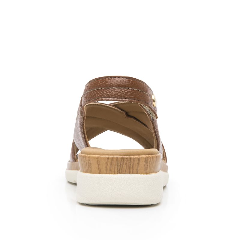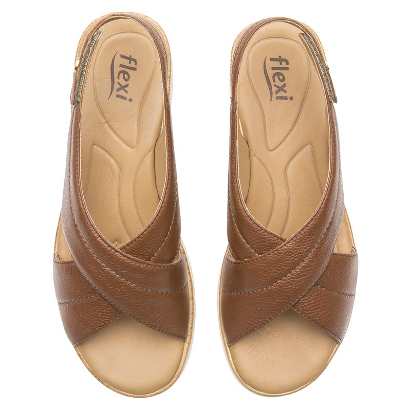 Sandalia Mujer Dariana 124212 Café. Sandalia cuña confort elaborada en cuero que cuenta con el sello de comodidad y estilo de zapatos Flexi. Este producto forma parte de nuestra línea de sandalias de dama para un look casual diseñada para brindarte el mejor confort. Cuenta con una plantilla acojinada que te hará sentir cómoda a cada paso, además sus cortes de cuero, acojinados y con velcros, te brindarán la transpiración necesaria y gran durabilidad. Este calzado cuenta con una suela de pu, una plantilla de cuero y forro ecocuero. Altura 4.1 cm. SKU: 124212TAN