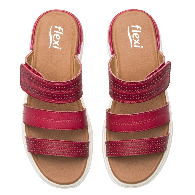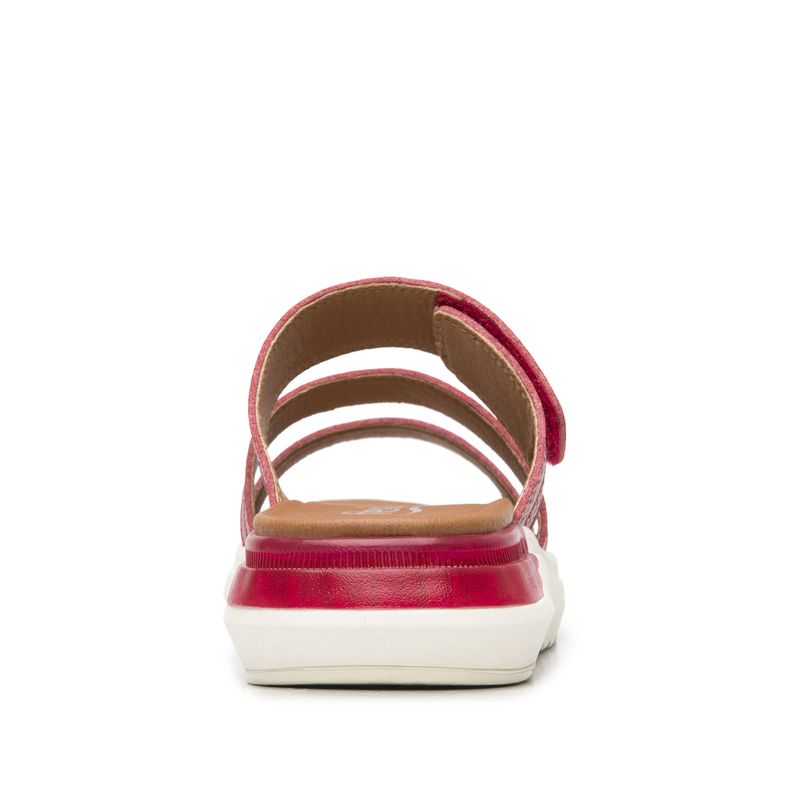 Sandalia Mujer Fraga 129404 Roja. Sandalia de confort elaborada en ecocuero que cuenta con el sello de comodidad y estilo de zapatos Flexi. Este producto forma parte de nuestra línea de sandalias cómodas y ligera en cada paso. Sus diseños cuentan con velcros para auto ajustarse a tu pie y materiales en tendencia como metálicos y tejidos. Este calzado cuenta con una suela de eva / gel, una plantilla de cuero y forro ecocuero. Altura 3.9 cm. SKU: 129404ROJO
