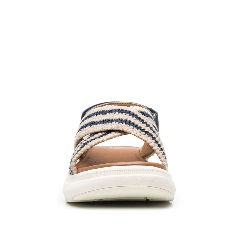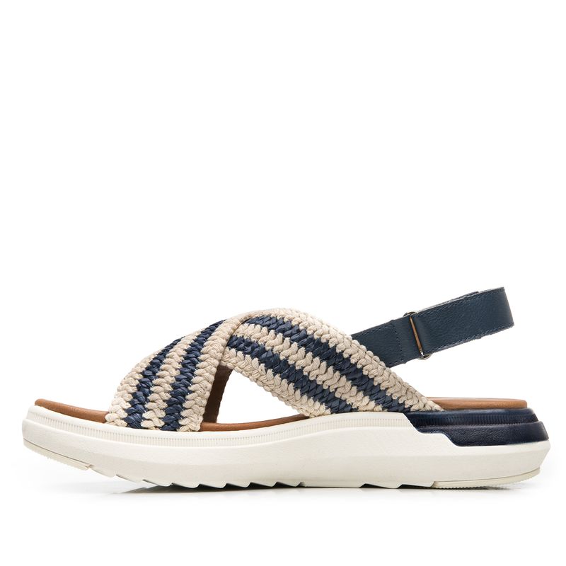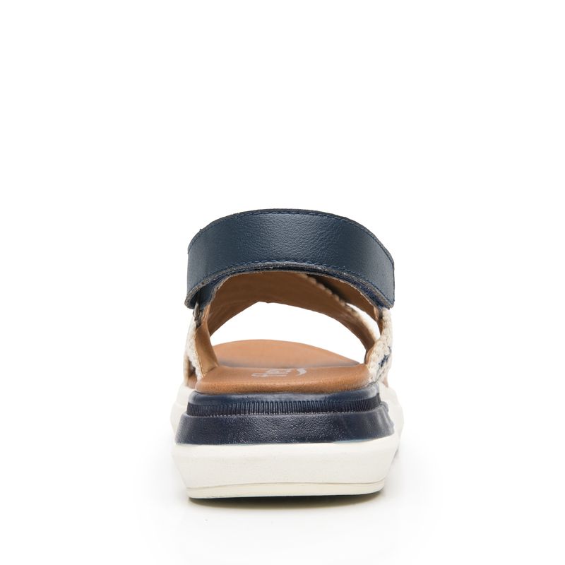 Sandalia Mujer Fraga 129405 Azul Marino. Sandalia de confort elaborada en ecocuero que cuenta con el sello de comodidad y estilo de zapatos Flexi. Este producto forma parte de nuestra línea de sandalias cómodas y ligera en cada paso. Sus diseños cuentan con velcros para auto ajustarse a tu pie y materiales en tendencia como tejidos. Este calzado cuenta con una suela de eva / gel, una plantilla de cuero y forro ecocuero. Altura 3.9 cm. SKU: 129405MARINO