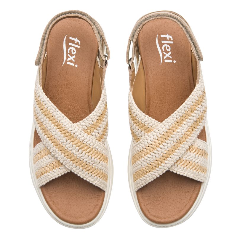 Sandalia Mujer Fraga 129405 Beige. Sandalia de confort elaborada en ecocuero que cuenta con el sello de comodidad y estilo de zapatos Flexi. Este producto forma parte de nuestra línea de sandalias cómodas y ligera en cada paso. Sus diseños cuentan con velcros para auto ajustarse a tu pie y materiales en tendencia como tejidos. Este calzado cuenta con una suela de eva / gel, una plantilla de cuero y forro ecocuero. Altura 3.9 cm. SKU: 129405BEIGE