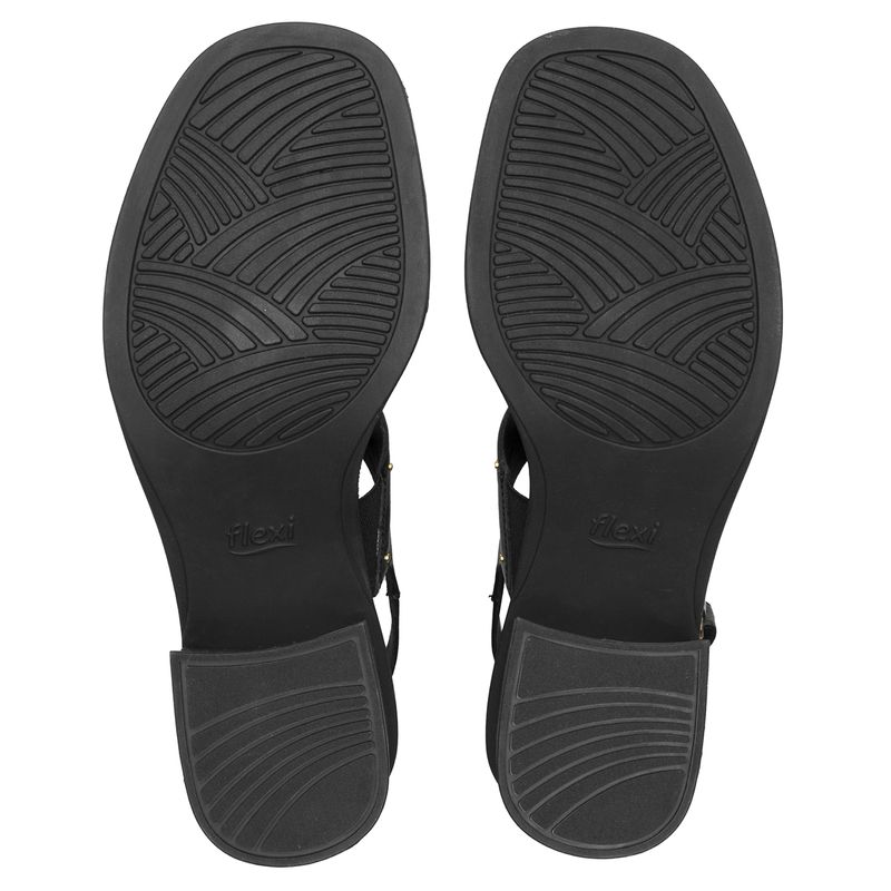 Sandalia Mujer Itacare 128407 Negra. Sandalia tacón medio elaborada en cuero que cuenta con el sello de comodidad y estilo de zapatos Flexi. Este producto forma parte de nuestra línea de sandalia para dama con estilo elegante y clásico. Su tacón bajo de 5.9 cm es muy cómodo y su patín de gran seguridad por sus atributos antideslizantes. Sus estilos marcan tendencia esta temporada por sus materiales tejidos y detalles metálicos. Este calzado cuenta con velcro, suela de abs - tpu / hule, plantilla de cuero y forro ecocuero. SKU: 128407NEGRO