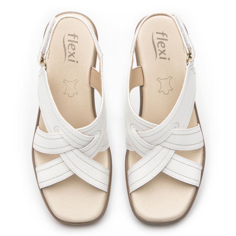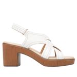 Sandalia Mujer Kaia 133504 Blanca. Sandalia con tacón de 7.8 cm elaborada en cuero que cuenta con el sello de comodidad y estilo de zapatos Flexi. Este producto forma parte de nuestra línea de sandalias casuales de tacón y plataforma (2cm), con diseños que brindan confort y seguridad al caminar. Es elaborada en cuero, con colores y detalles que destacarán esta temporada. Este calzado cuenta con una suela de pu, una plantilla de cuero y forro ecocuero. SKU: 133504BLANCO