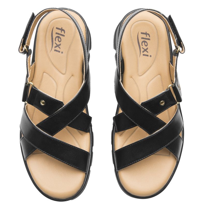 Sandalia Mujer Lexa 128513 Negra. Sandalia con plataforma casual elaborada en cuero que cuenta con el sello de comodidad y estilo de zapatos Flexi. Este producto forma parte de nuestra línea de sandalias que lo tienen todo: sus estilos y colores de moda, con una suela chunky que les da ese look actual y manteniendo ese confort que caracteriza la marca. Este calzado cuenta con hebilla, suela de pu, una plantilla de cuero y forro ecocuero. Altura 4.7 cm. SKU: 128513NEGRO