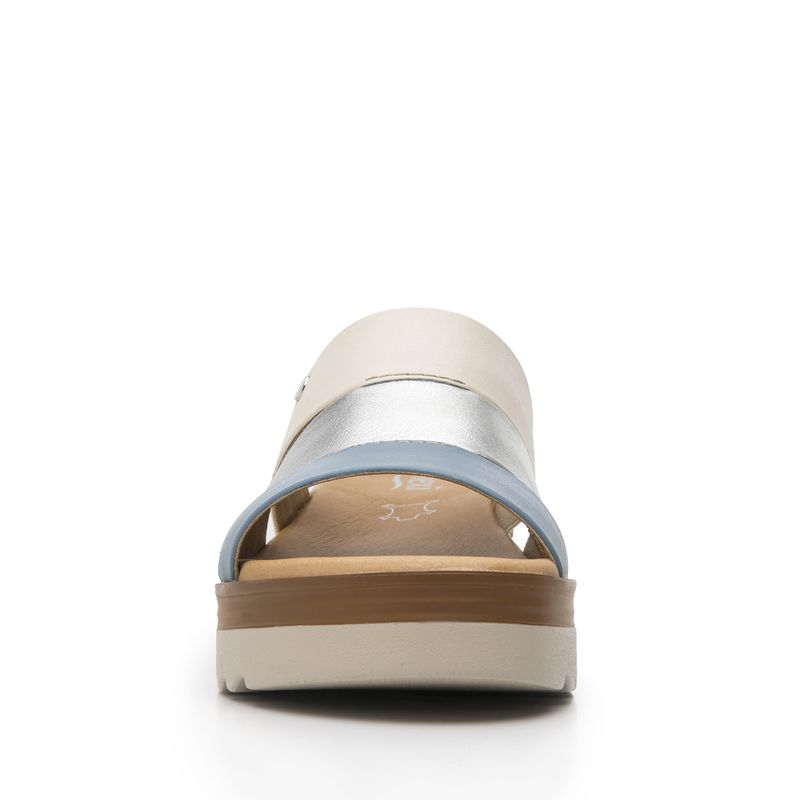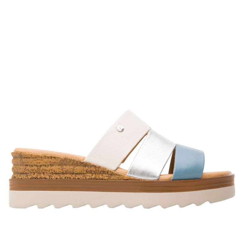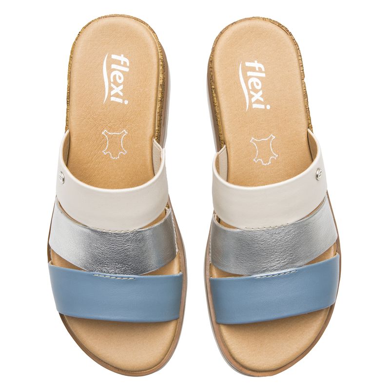 Sandalia Mujer Manaus 127705 Azul Y Plateada. Sandalia de plataforma elaborada en cuero que cuenta con el sello de comodidad y estilo de zapatos Flexi. Este producto forma parte de nuestra línea casual de sandalias que te permitirán disfrutar de la comodidad de un calzado bajo con una plataforma bicolor. Son ideales si buscas practicidad, estilo y comodidad. Sus diseños son elaborados en cuero. Este calzado cuenta con una suela de pu pintado, una plantilla de cuero y forro ecocuero. Altura máxima 6.1cm. SKU: 127705AZULMULTICOLOR